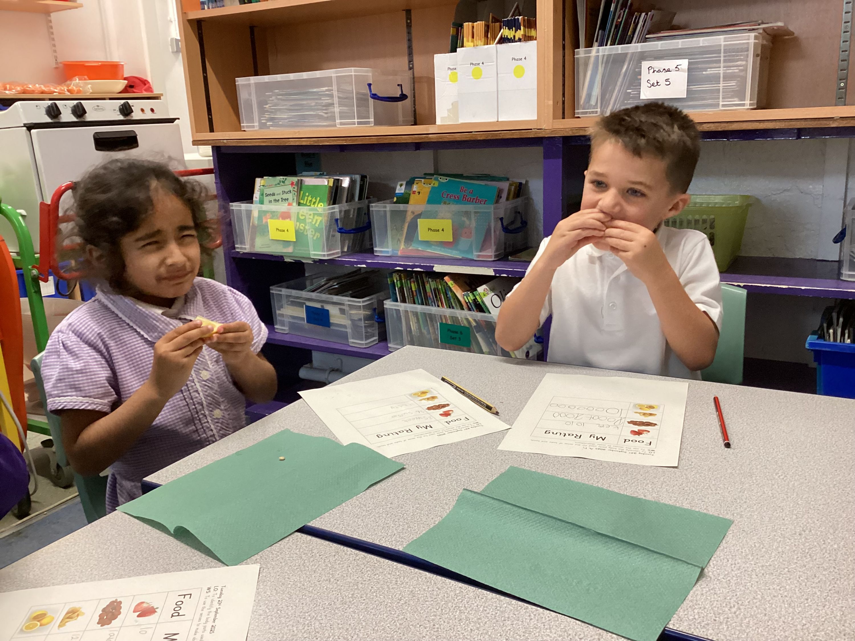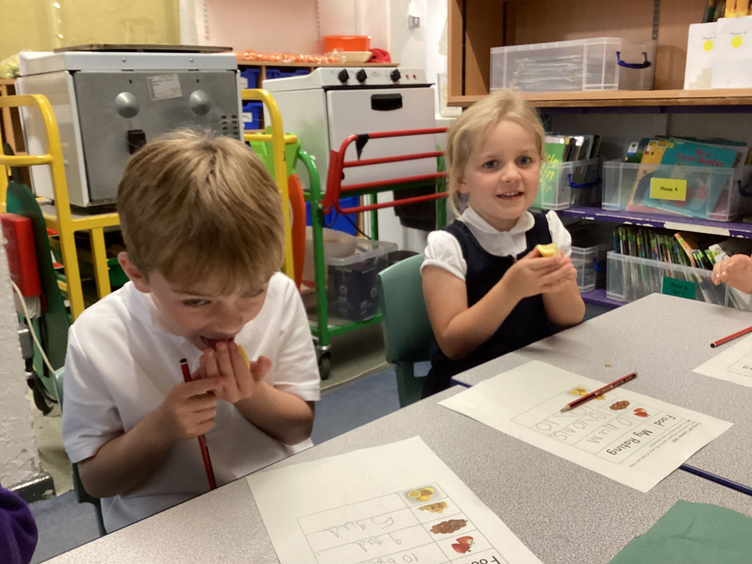 In Science, we explored our sense of taste. We described how different foods tasted. We also used other senses such as sight and tough to explore the different foods, using fantastic vocabulary like bumpy and smooth. We recorded our thoughts in a table, giving each food a rating.