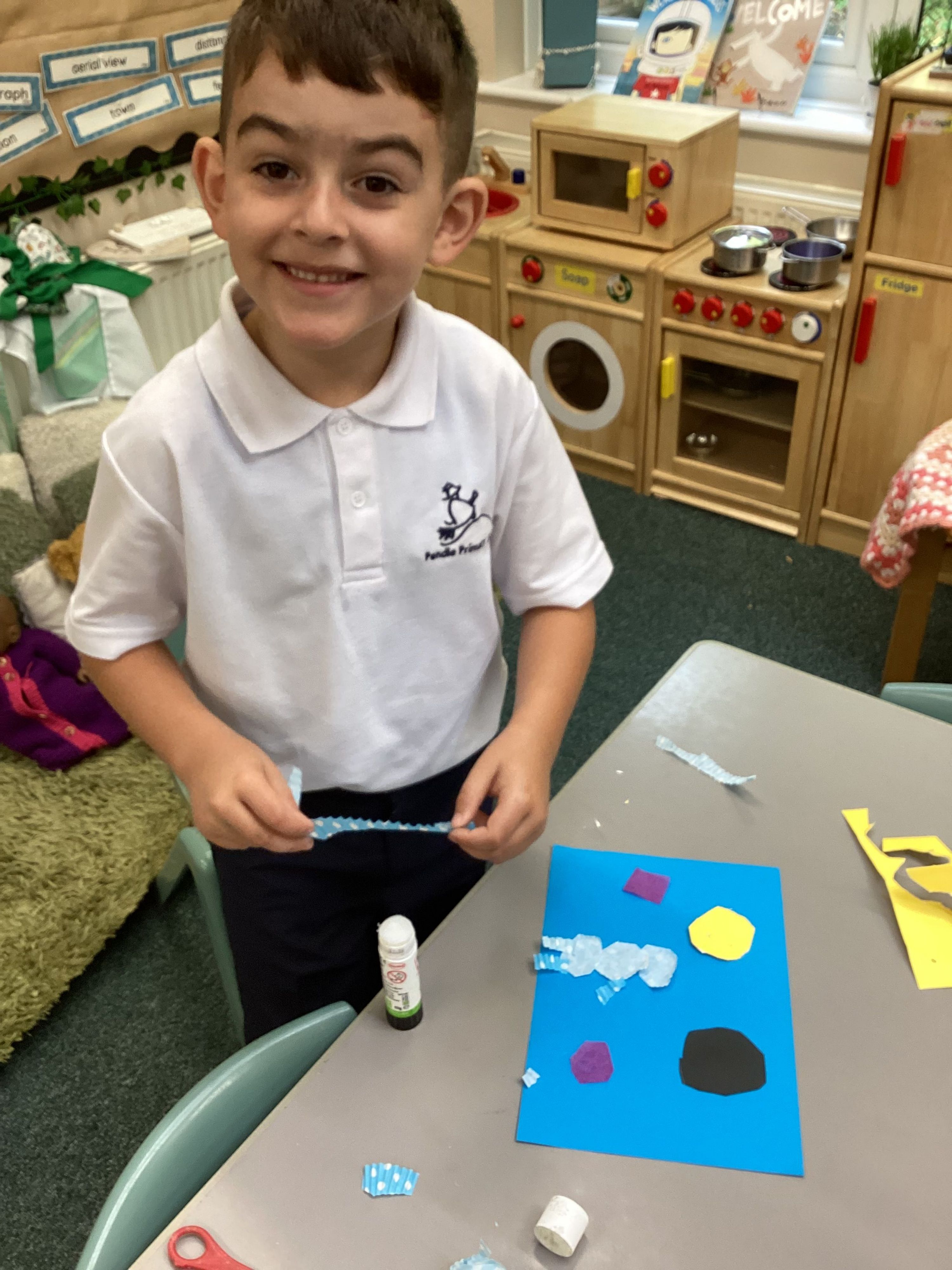 In RE, we had a Godly Play visit! Our visitors told us all about the story of Creation. We enjoyed developing our own creations after they shared the story.
