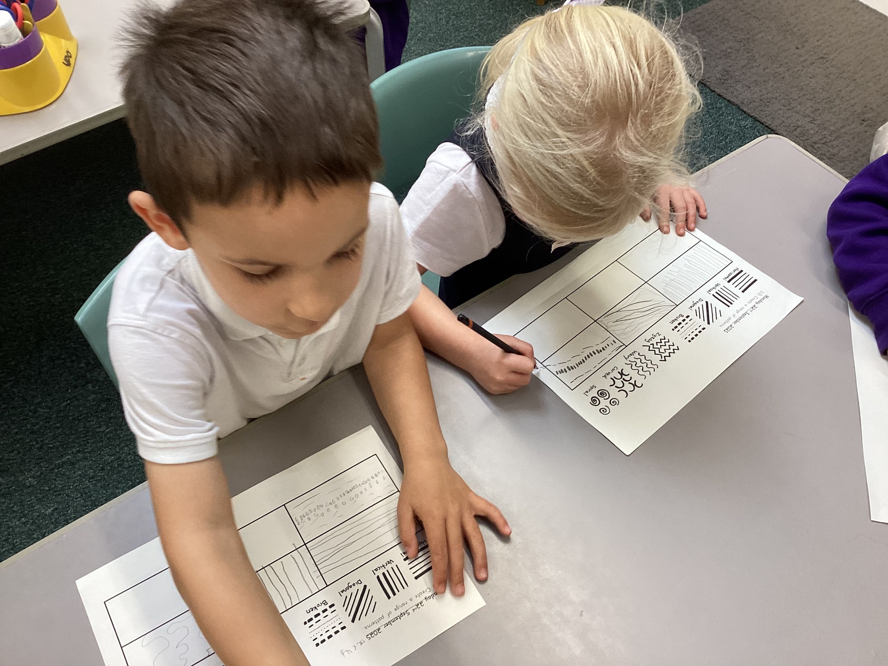 In Art, we practised different lines and patterns. Our extra challenge was to see if we could apply what we remembered about creating tone to create different light and dark shades.
