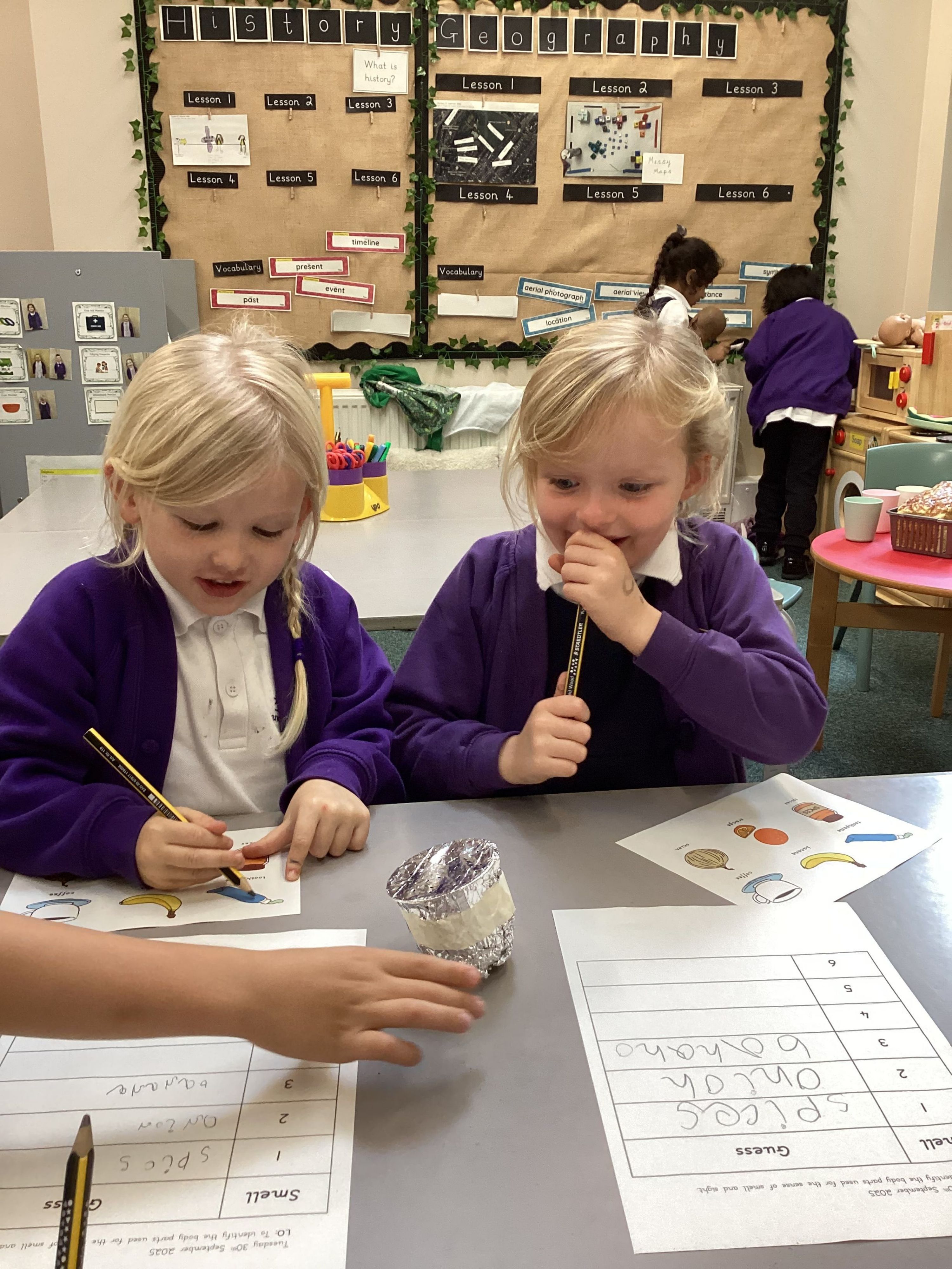 In Science, we have explored using our sense of smell. We used our noses to identify different smells. We also considered the importance of our sense of sight in exploring the world. We discussed how incredible it was for those with visual impairments to use other senses to explore the world. Children noticed how it can feel worrying or scary to not have their sense of sight to help them, and considered how we can help those with impairments.