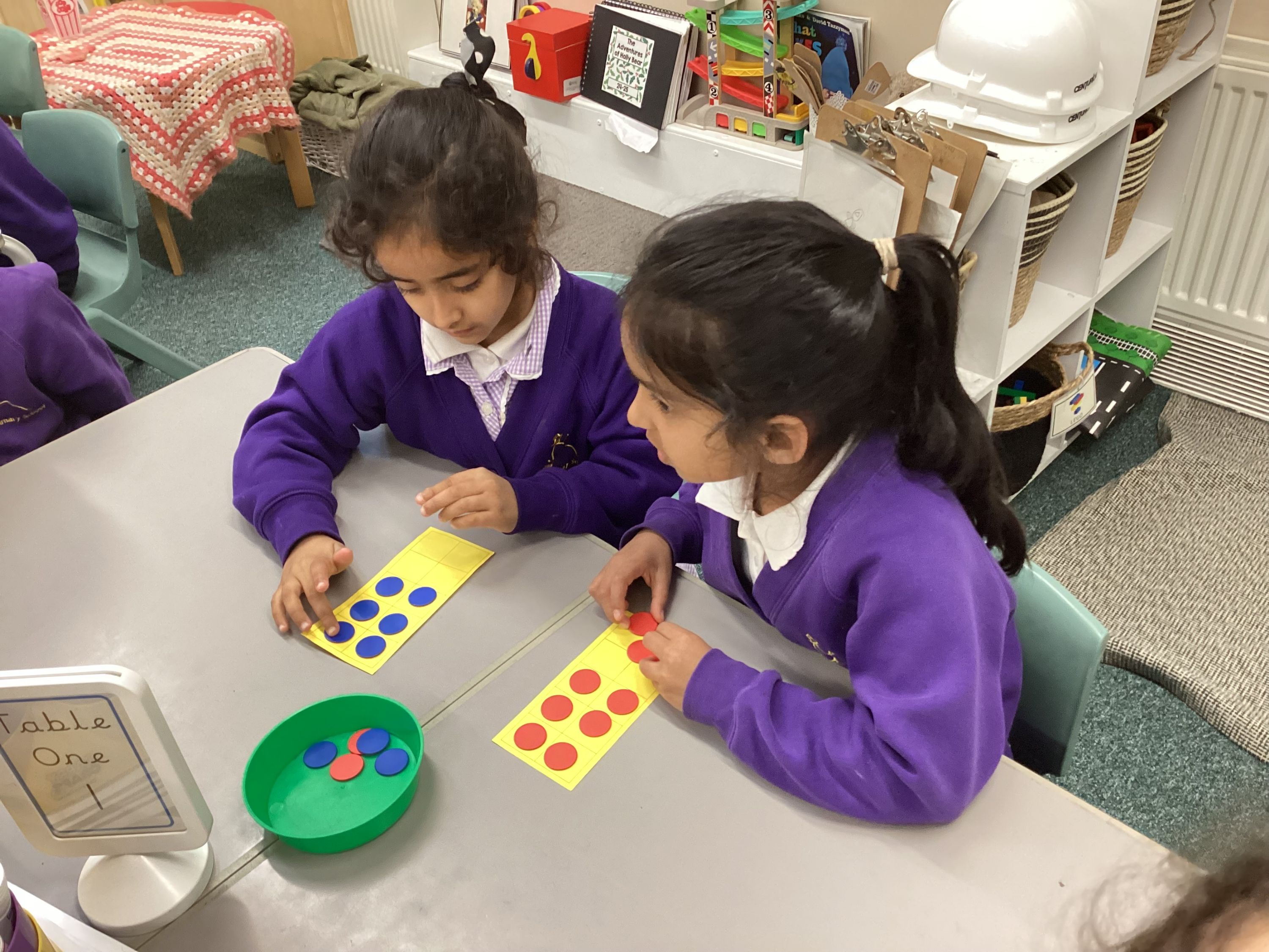 Also in Maths, we were using a tens frame to add a single digit number to 10.