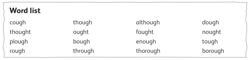 Grouping words by their pronunciation (like though, through, rough, cough) makes it easier for children to remember how to spell them by association.