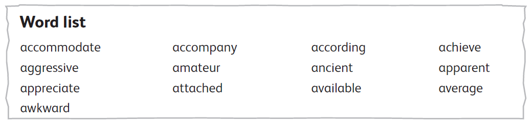 Children will be familiar with the vocabulary in the Year 3/4 word list, but the words contain many of the spelling pitfalls that challenge them in their everyday writing. These words will need to be returned to on a regular basis, e.g. in the units on words from children’s own writing, in order to consolidate accurate spelling.