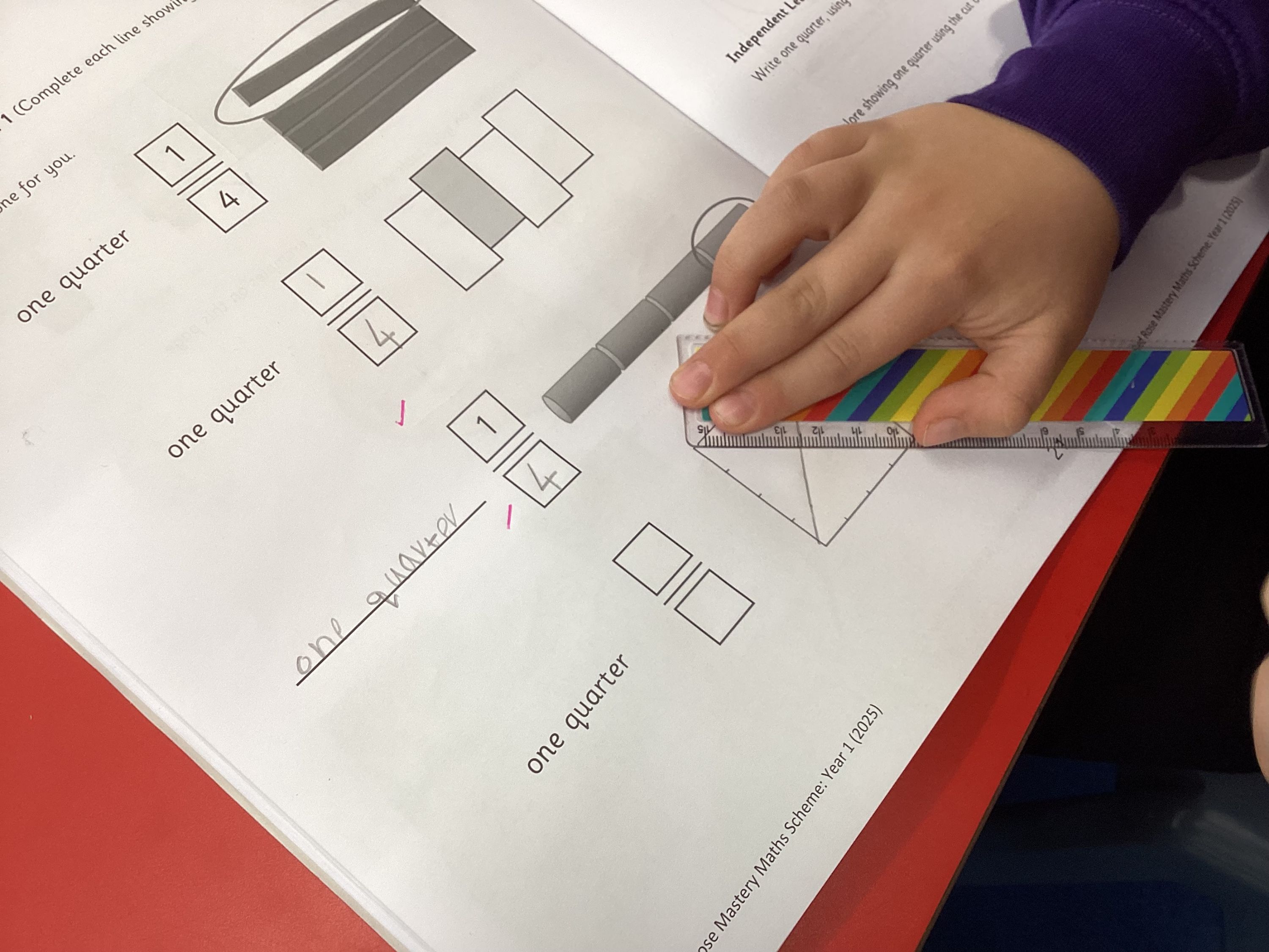 Year 1 have been learning about a half and a quater in their Maths lessons this week.