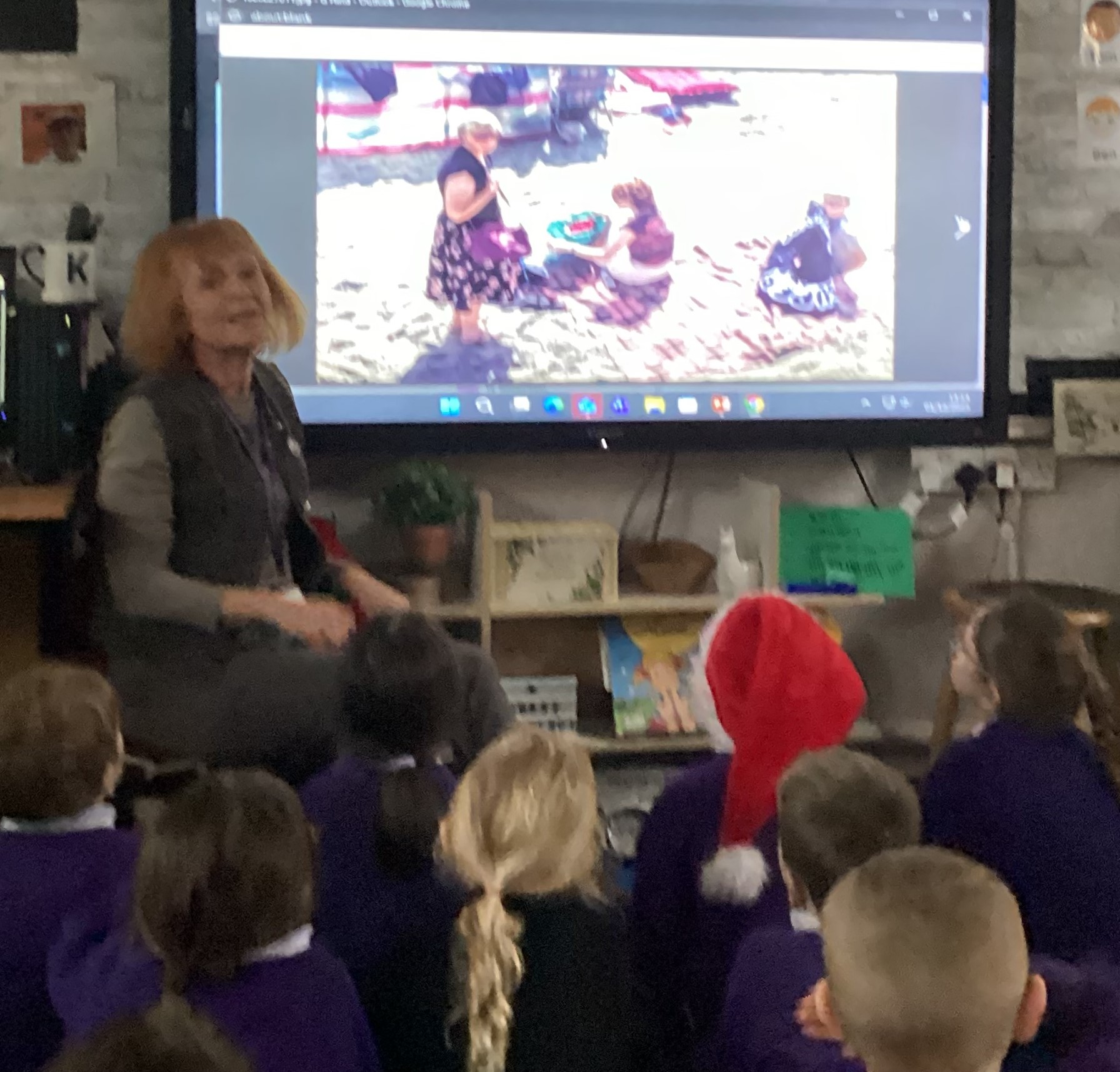 In History, we have been learning about holidays in the past. We wrote questions to find out what Mrs Nunns’ holidays were like when she was a little girl. Mrs Nunns visited us and shared her holiday memories and showed us some photographs.