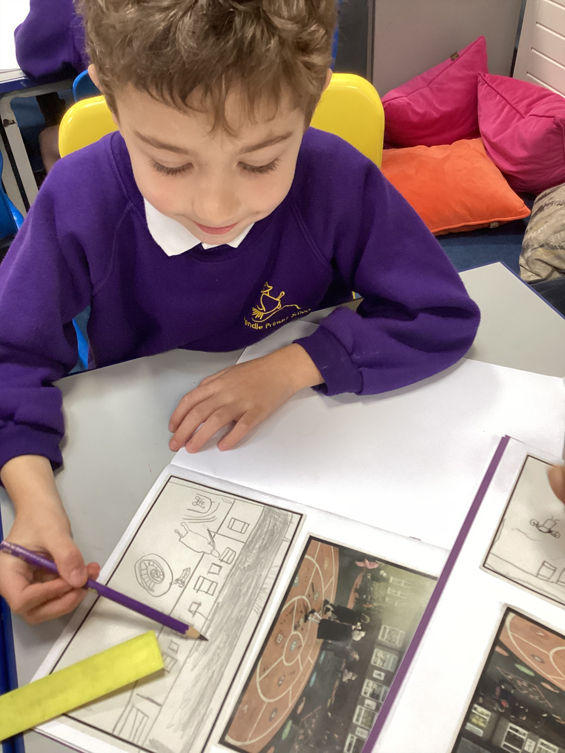 What a wonderful first week back! This week we have read a variety of firework and bonfire poems and created our own. We enjoyed generating vocabulary to include, focusing on the suffix ‘ing’, such as, popping, fizzing, twirling, soaring and sparkling. In Maths, we have used Base 10 and part part whole models to add and subtract two-digit numbers. We found the models useful particularly when looking at missing number calculations. In Art this week, we were drawing once again in the style of L.S Lowry using sketching pencils. This time we focussed on buildings rather than people. We included leaded windows, chimney pots and railings to imitate his style. We started our dance unit in PE. We thoroughly enjoyed exploring the character of the ‘Big Bad Wolf’ from The Three Little Pigs. We used our bodies and facial expressions brilliantly to express the character. In RE this week we began our Christianity topic, considering the Christian belief of Jesus being the ‘Light of the World’. We made candle sun catchers and displayed them on our classroom windows. They look lovely and catch the light beautifully.