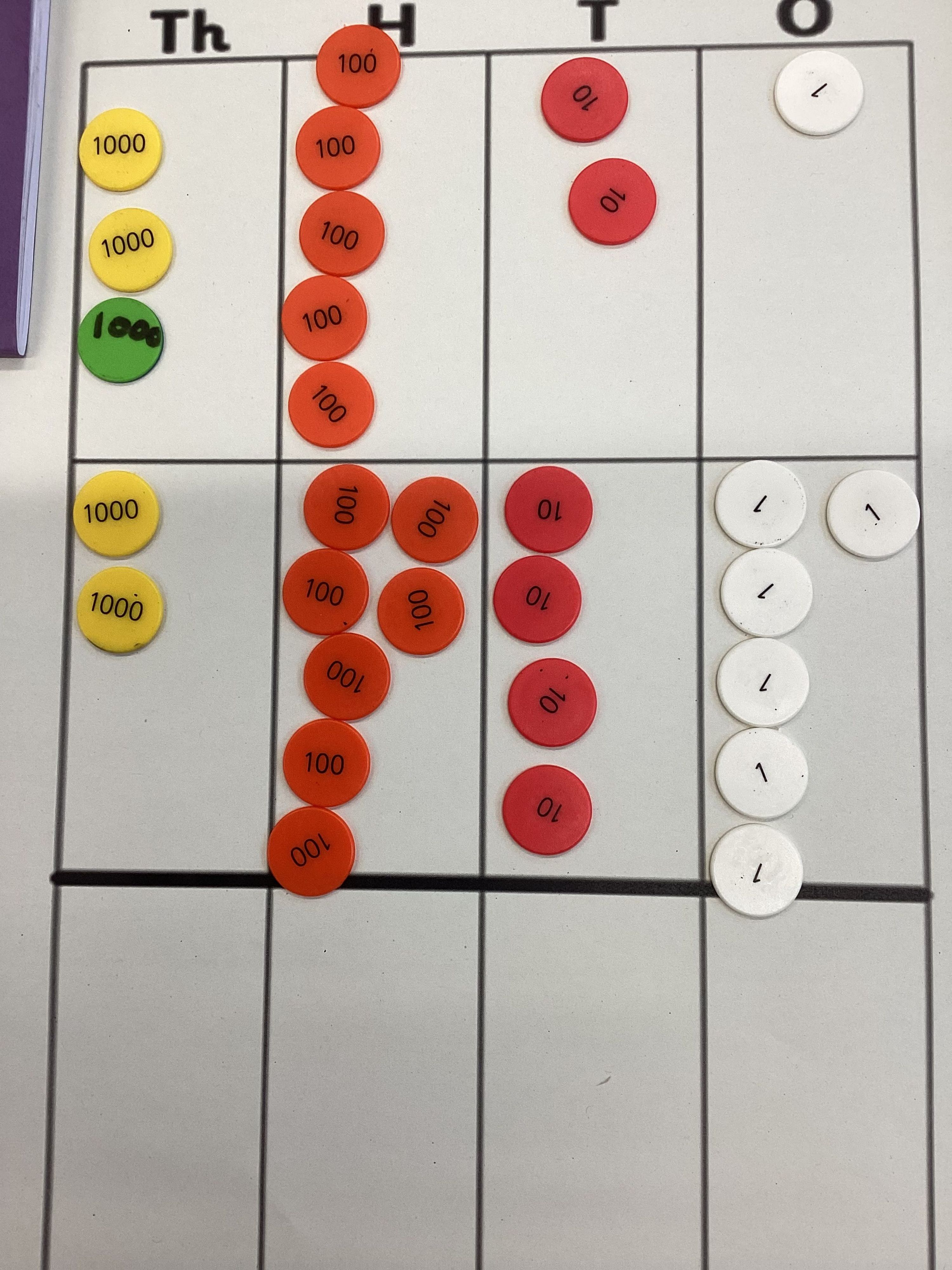 In Maths, we have been learning how to add 4-digit numbers by using place value counters to represent thousands, hundreds, tens, and ones. This helped us visualise the value of each digit and understand how regrouping works when columns go over ten. After practising with counters, we moved on to the formal written method, setting out the numbers in columns and adding each place value step by step. This approach strengthens our understanding of both the concept and the procedure for accurate addition.