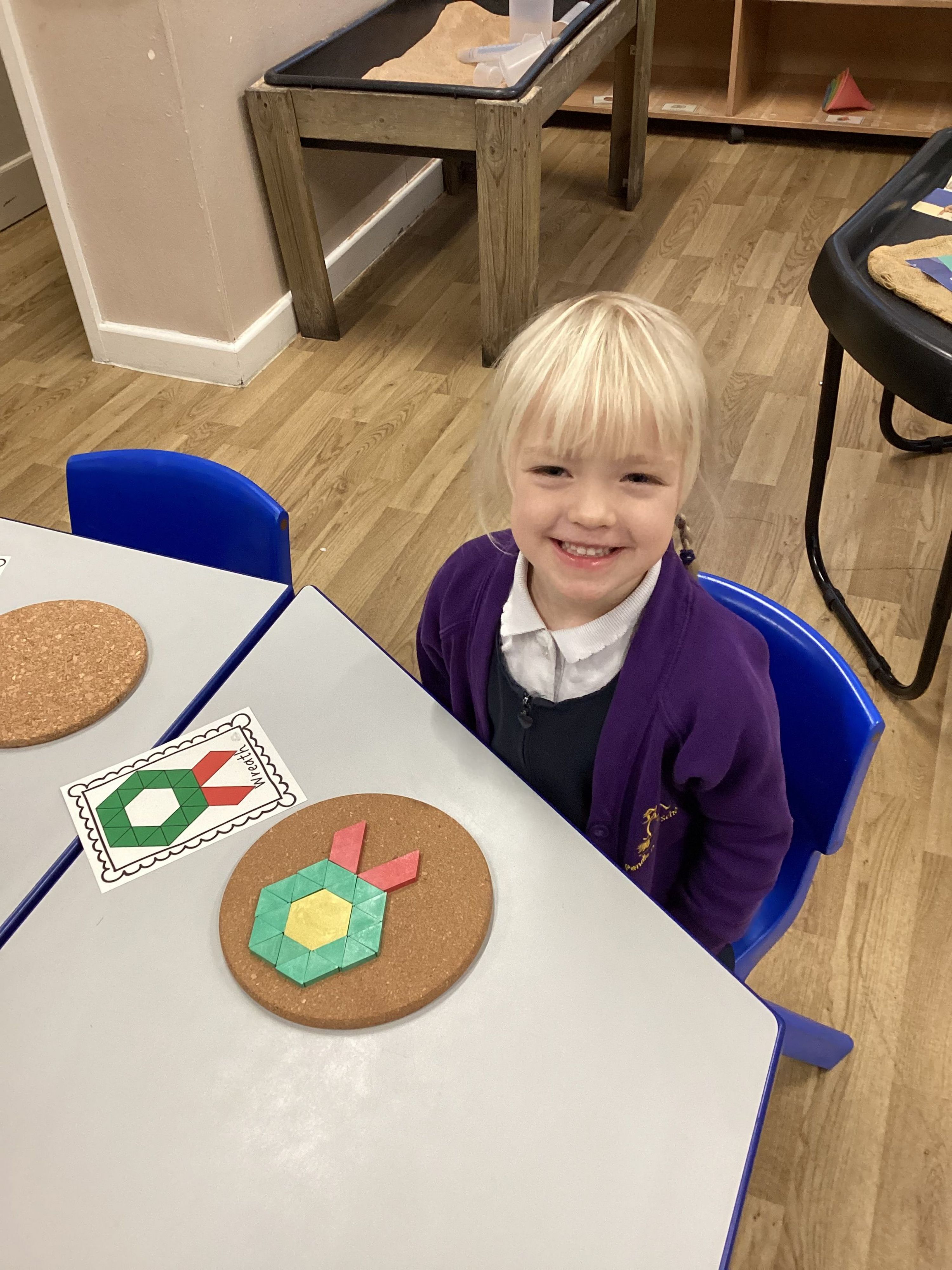Our children have been creating beautiful Christmas pictures using tangram shapes. They looked carefully to match the pieces, rotated them to fit, and showed fantastic problem-solving skills.