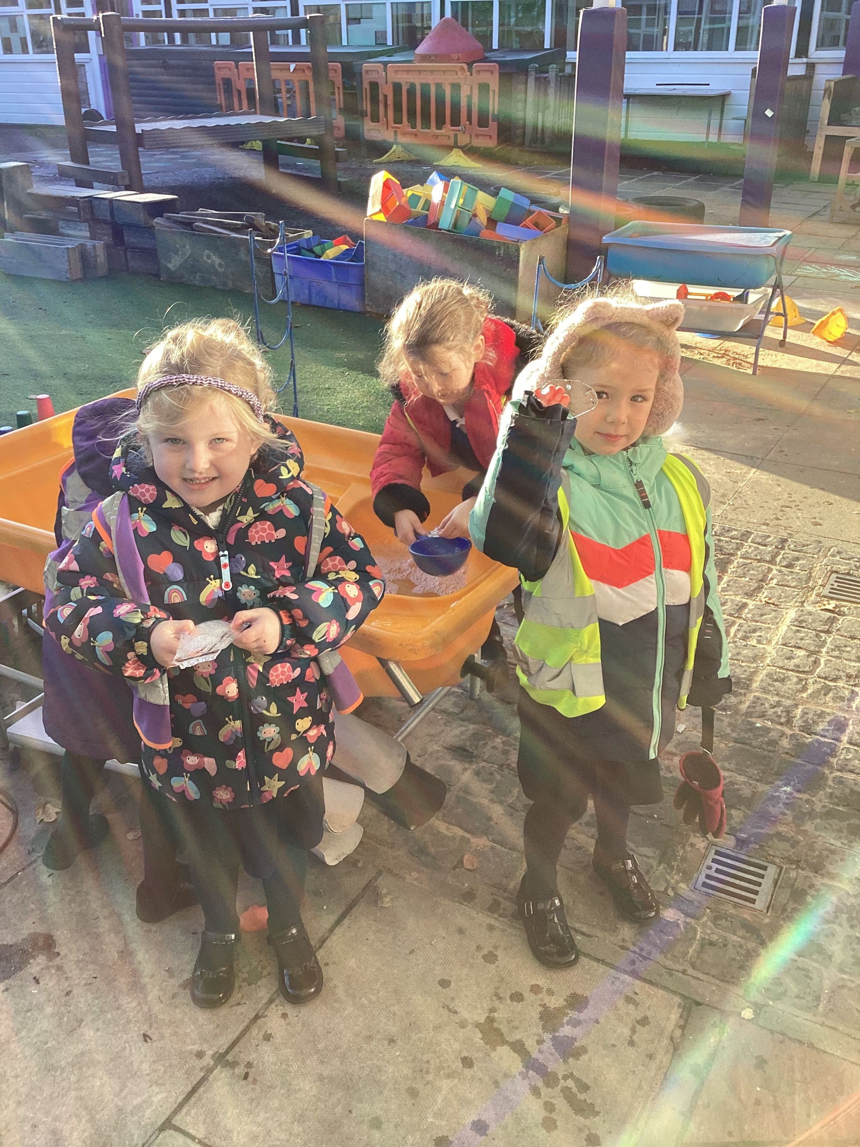 With the frosty temperatures this week, the children had the chance to explore ice and frost outdoors. We talked about how it looked and felt, using descriptive words such as slippery, cold, and shimmery. The children were fascinated to discover what happens when we hold ice and why it melts, building their scientific thinking and vocabulary through hands-on exploration.