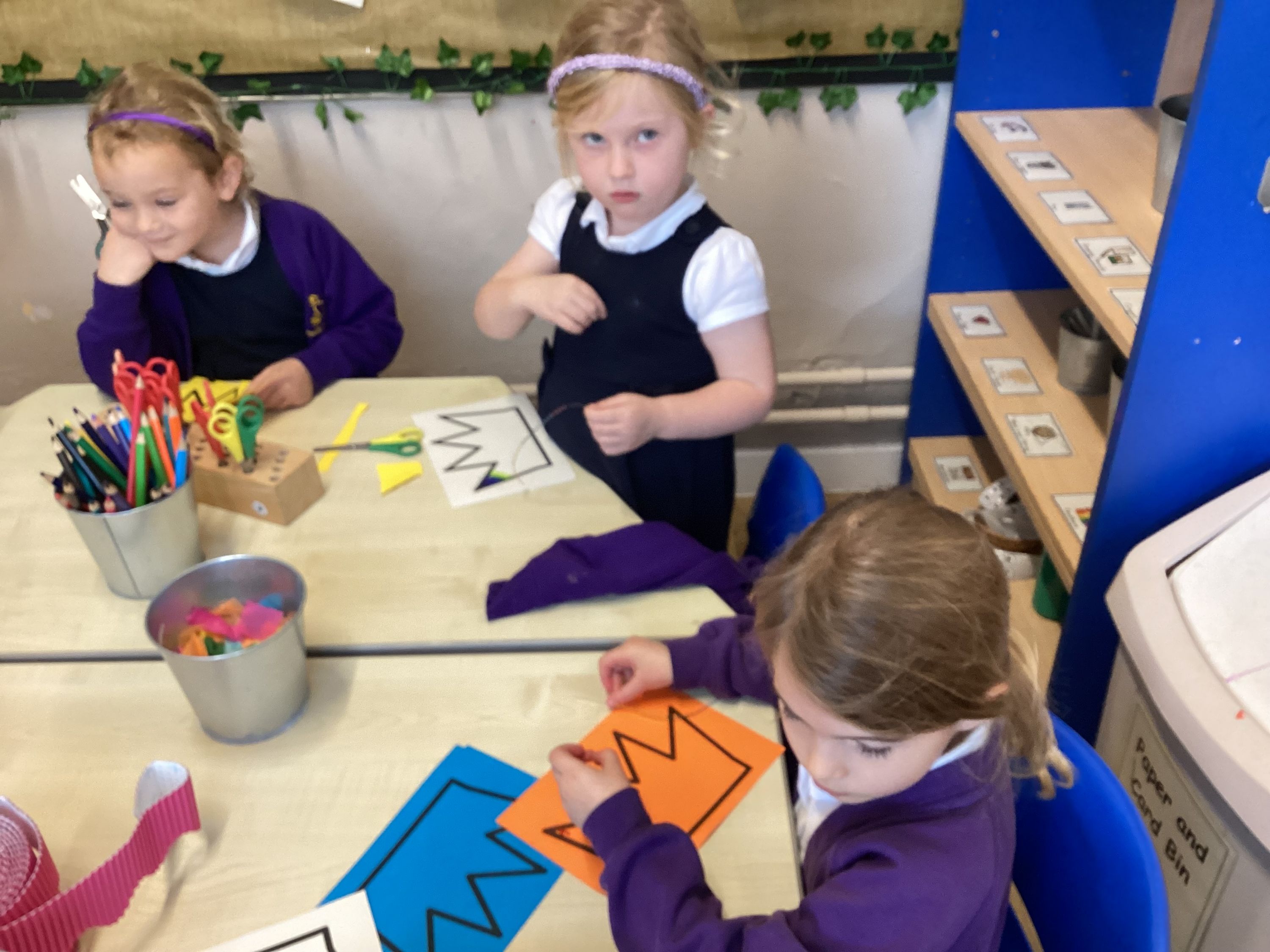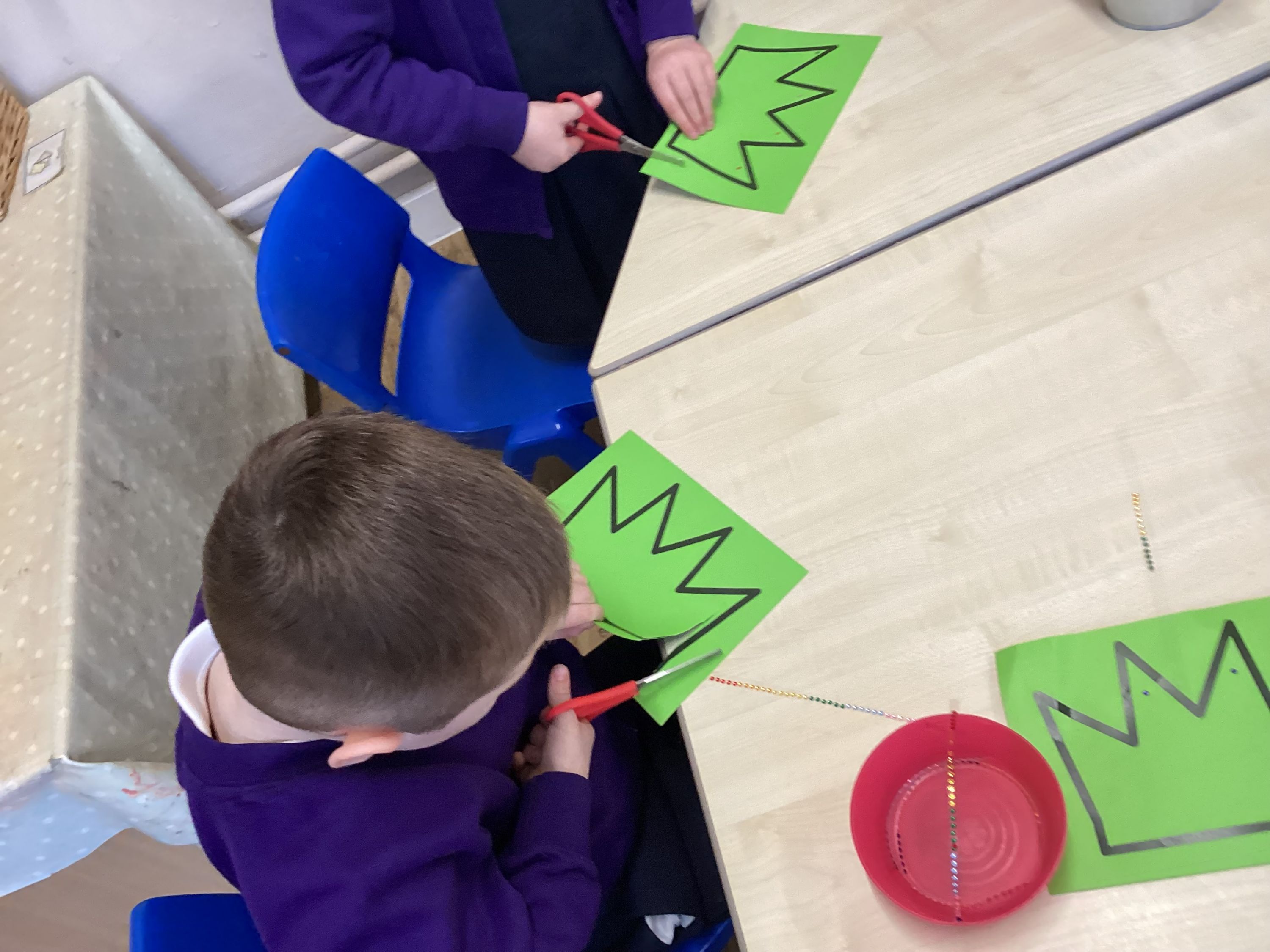The children had lots of fun designing and making their own crowns, just like the princess in Zog and the Flying Doctors. They practised their fine motor skills by cutting, colouring, and carefully adding materials such as gems, feathers, and collage pieces.