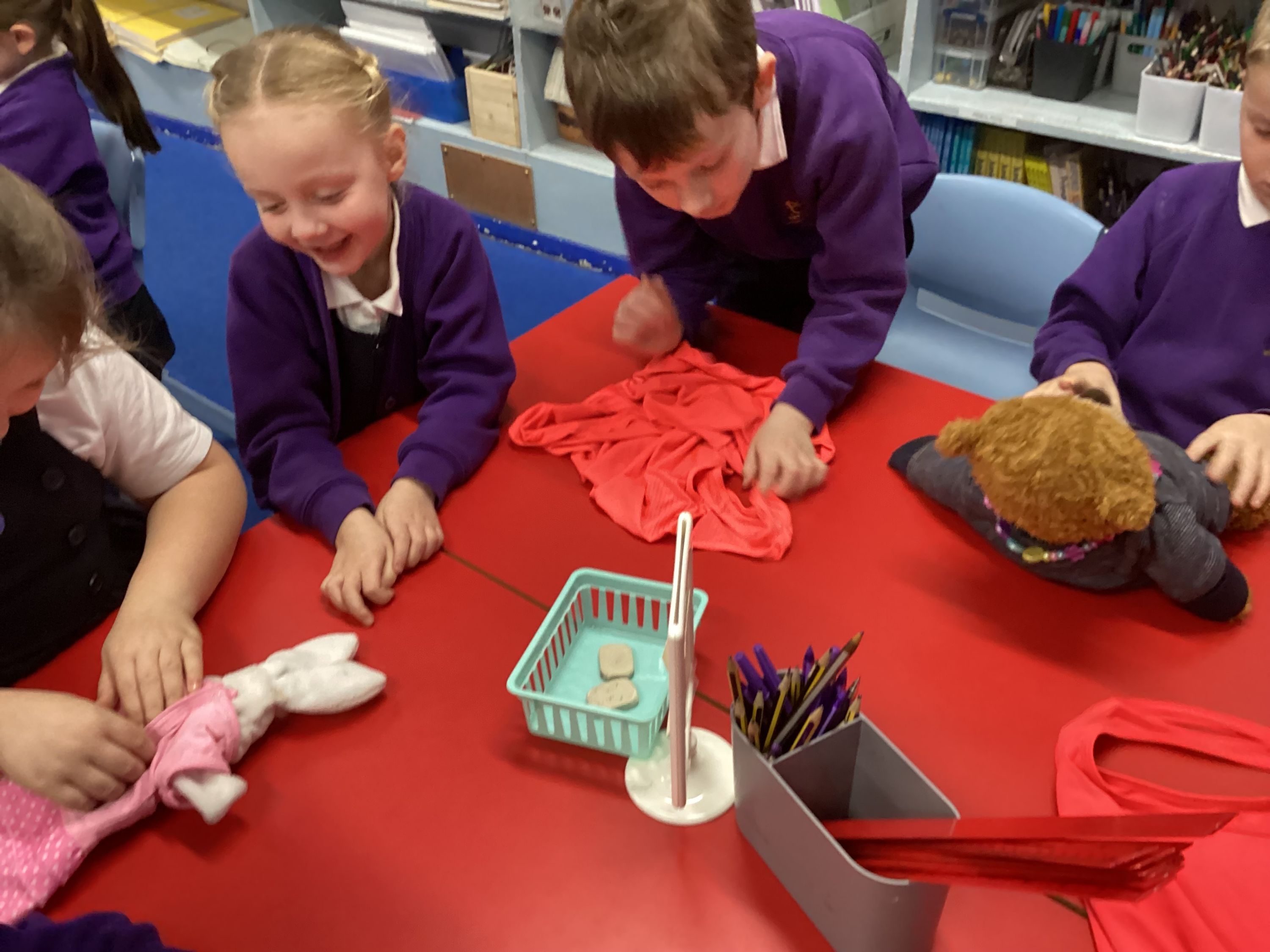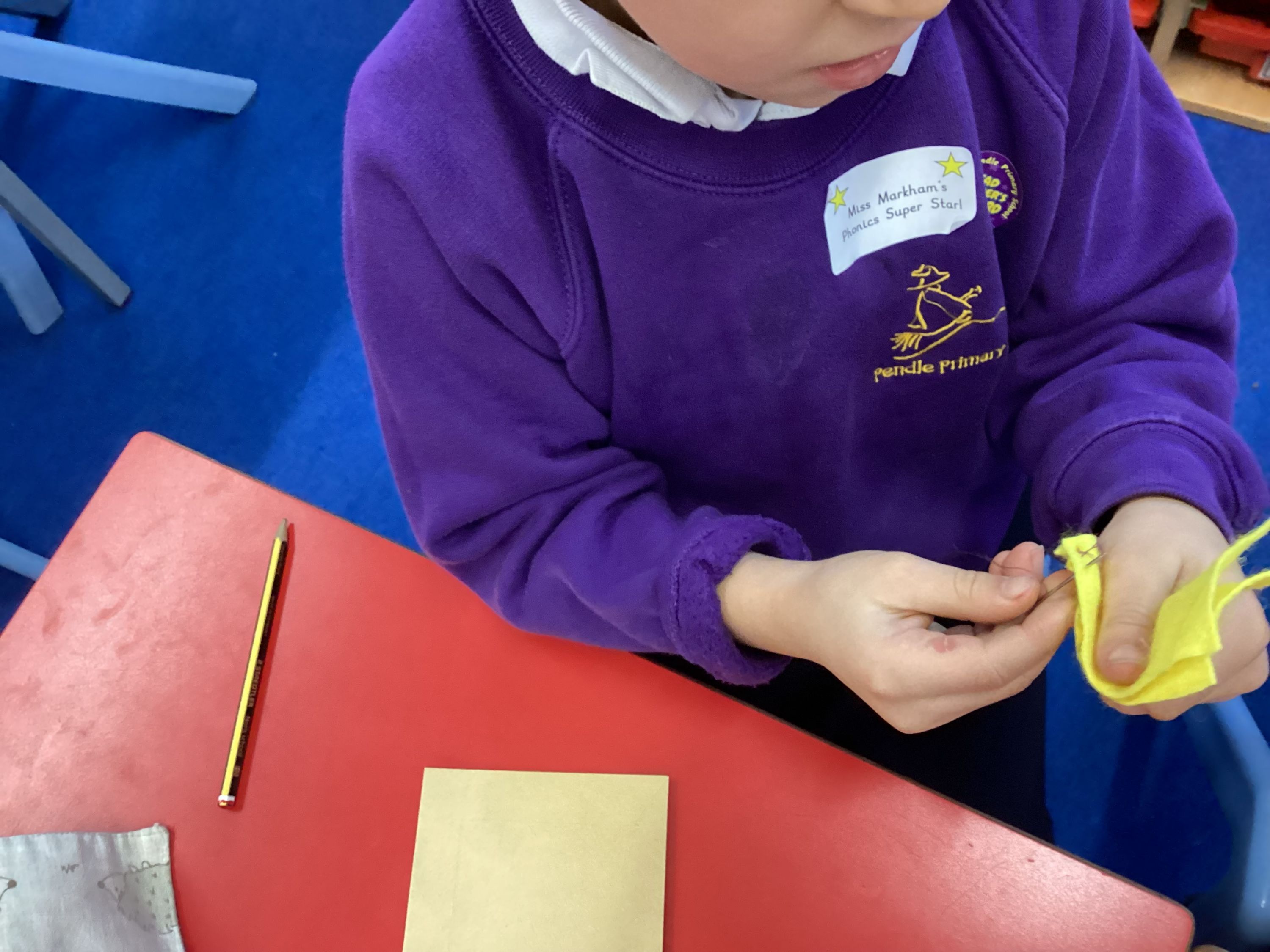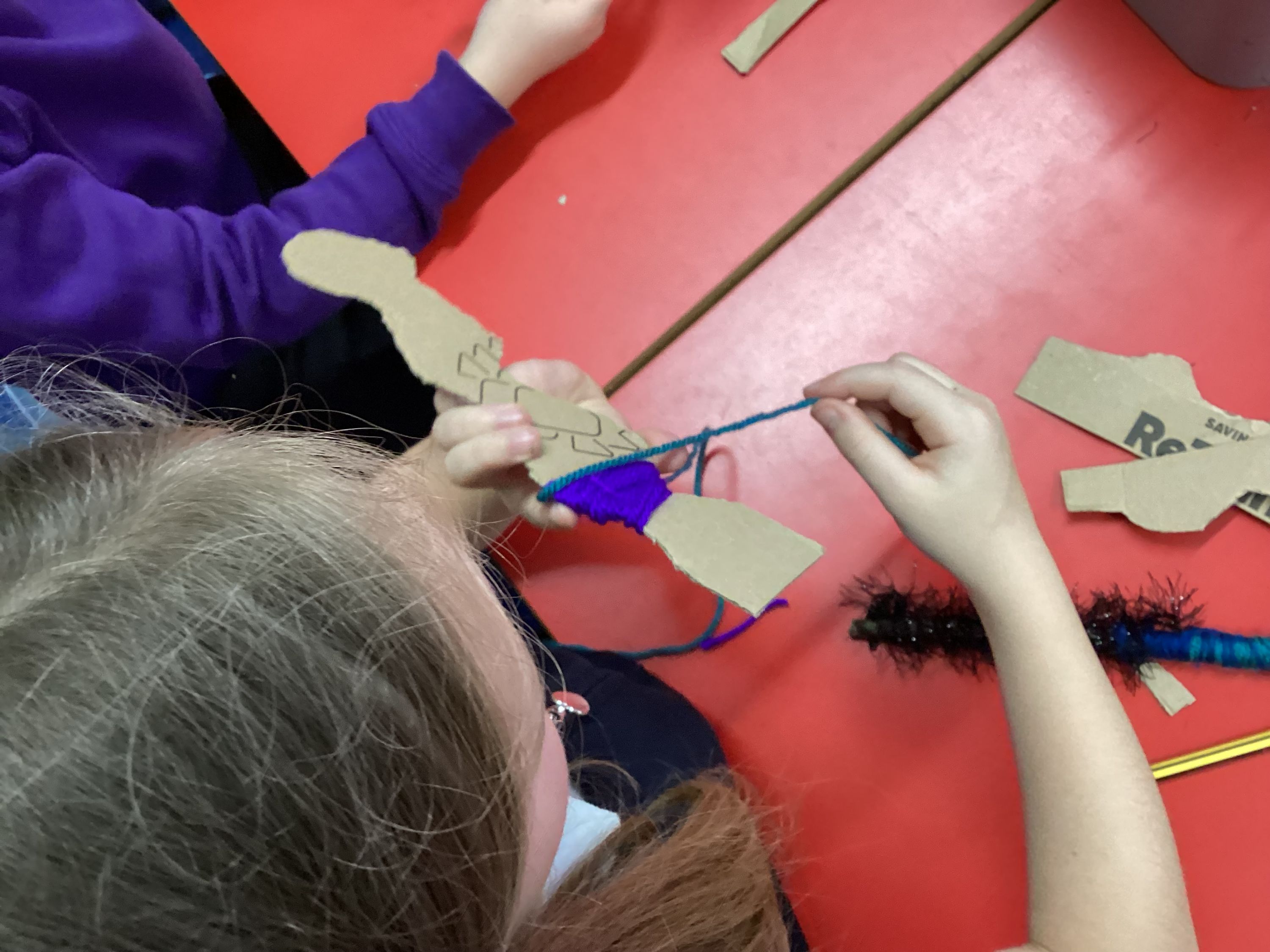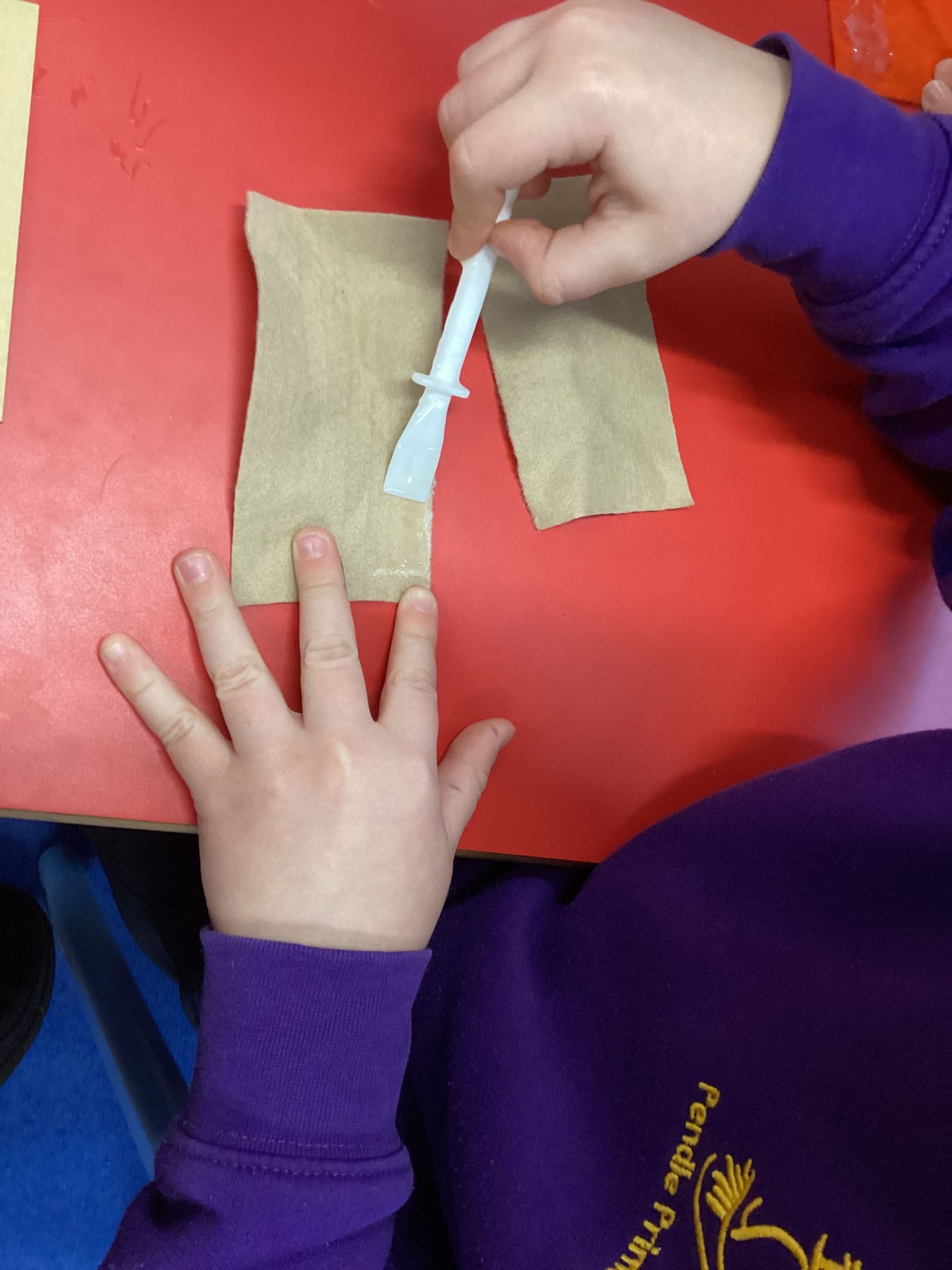 In DT, we practised the joining skills of glueing and using the running stitch.