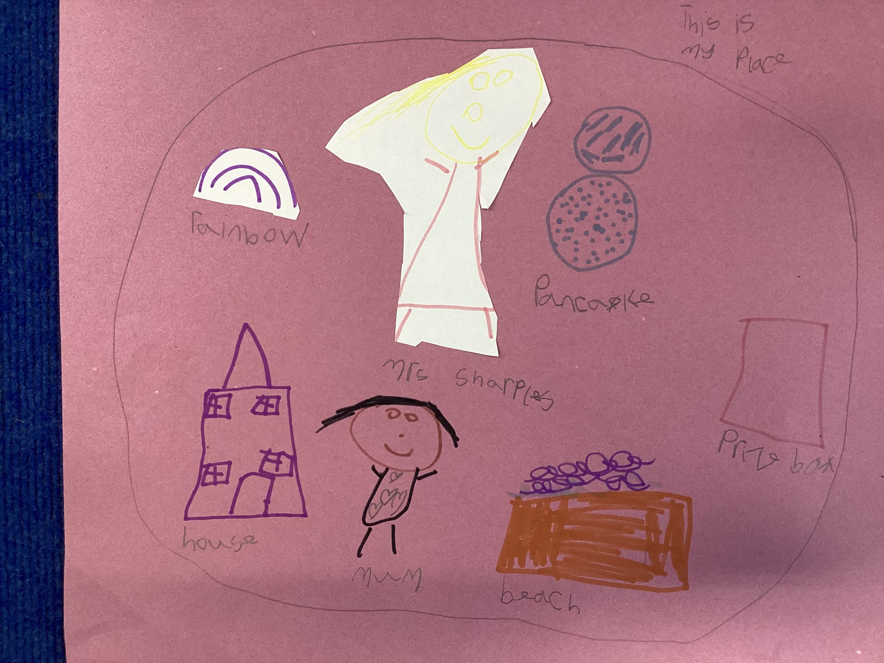 We thought about what makes us feel safe and secure. We represented our ideas by creating' This is my place' maps.