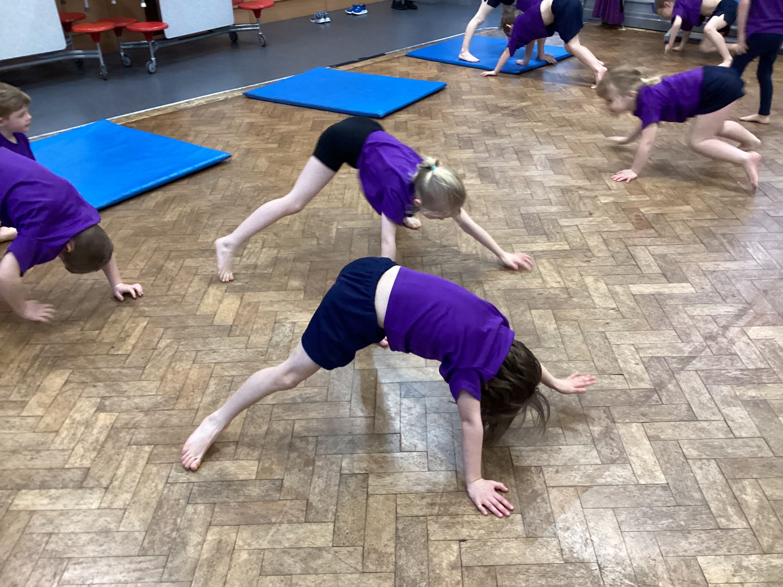 In PE, we are focusing on gymnastics. We practised our pencil rolls and caterpillar walking.