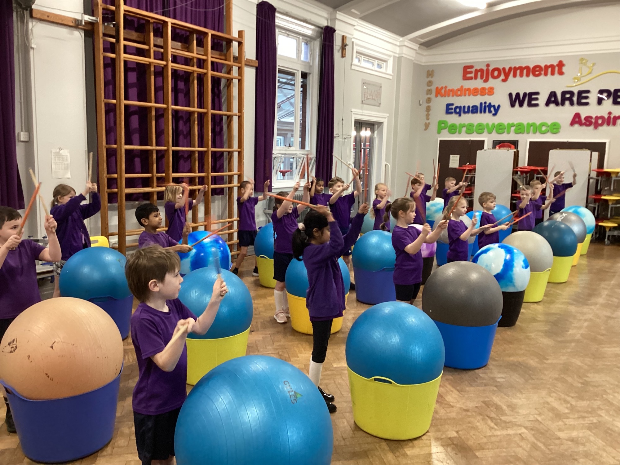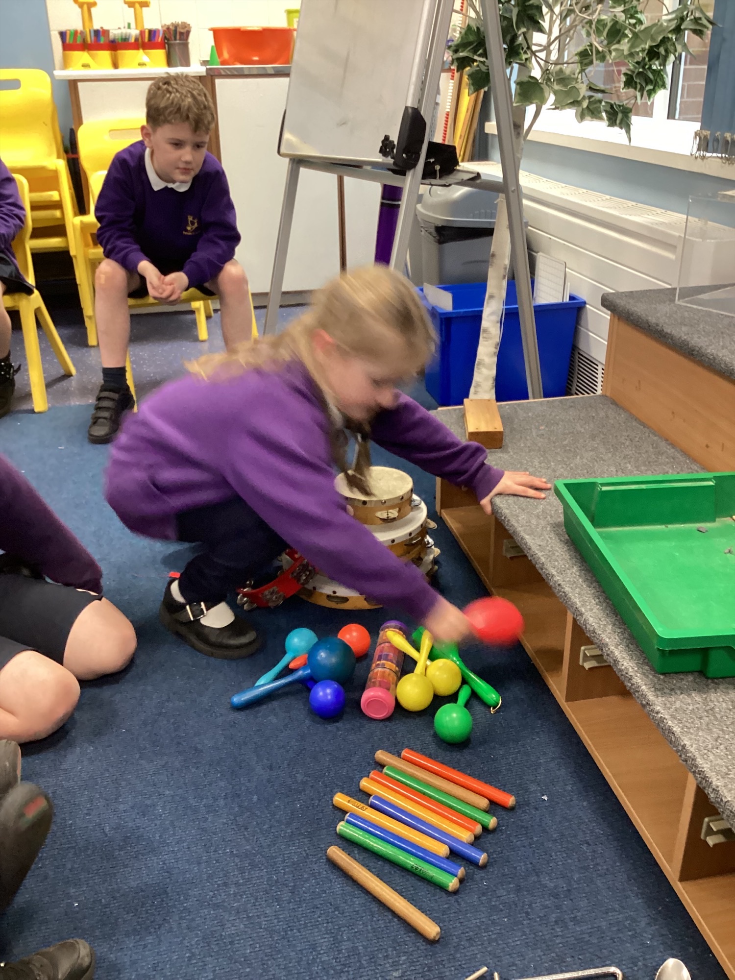 This week in Maths we have been doing Time. We have really enjoyed using the geared clocks and our knowledge and understanding is developing. In English, we have studied non-fiction texts. We have explored the features of non-fiction texts and we have started to write notes to create our own text, 'All About Ducks'. In History, we have been considering schools in the past. We looked at artefacts from Pendle Primary in the past and we also interviewed a former pupil too. This week in Gymnastics, we moved between six stations, creating the taught shapes and we enjoyed using the mats, benches and hoops. In Science, we considered the diets of a variety of animals. We developed our understanding of the terminology carnivore, herbivore and omnivore. This week we had an amazing time with Drums Aloud too!