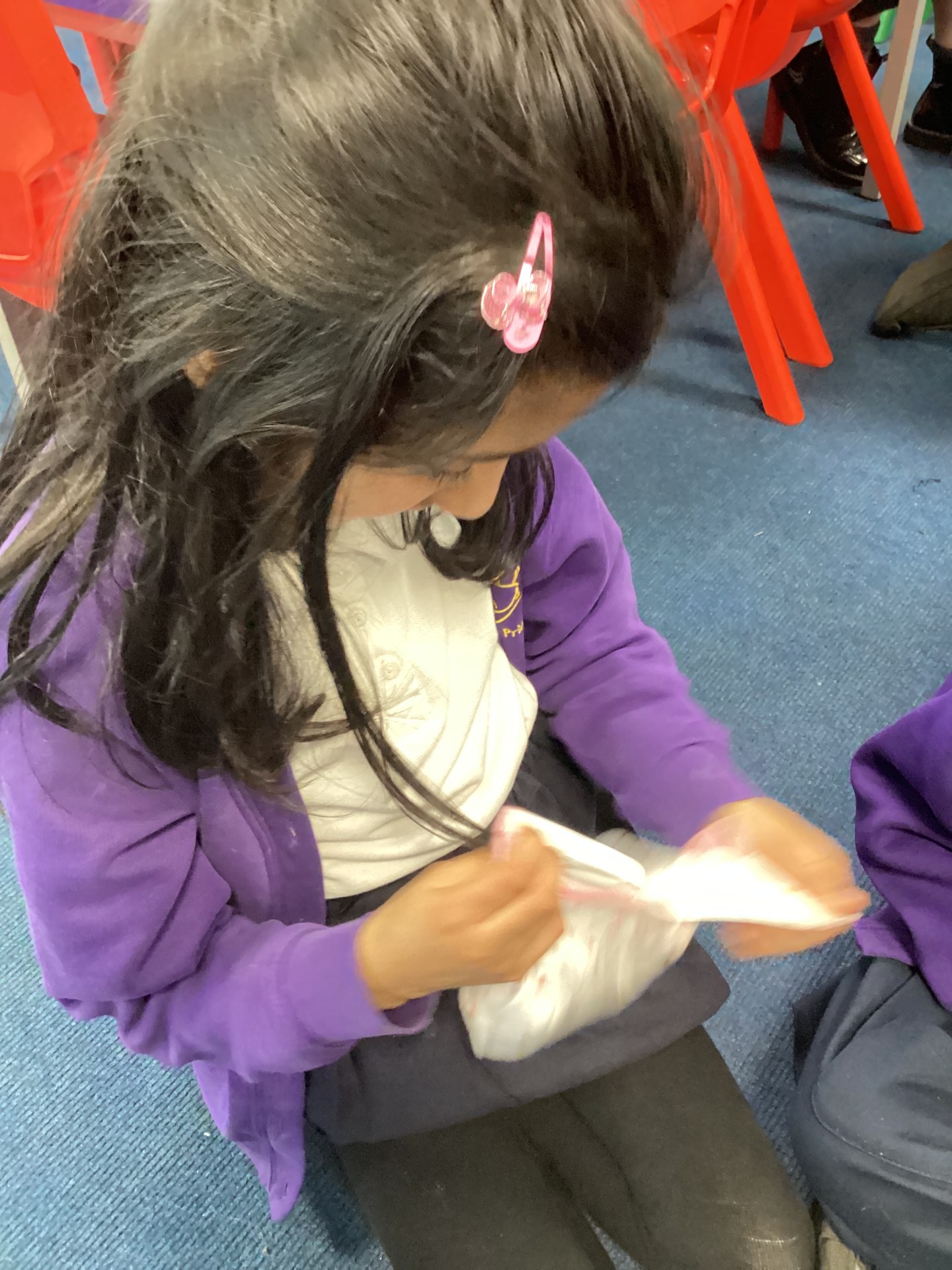 This week in English, we explored the meanings of lots of new unfamiliar vocabulary from the text ‘Wanted: The Perfect Pet’.  We discussed our ideas about the definition of the words, but also used an online dictionary too. We also thought about the feelings of the character duck and we considered why a duck might make a good pet. In Maths this week, we began our Money unit. We discussed the value of coins, we explored how multiple coins can have the same value as a single coin and we calculated the cost of various items using jottings to help us. In DT we explored existing products and investigated how they had been made. We focussed on the joining techniques. Were they stitched, glued or fastened using a zip? In our PRSHE 'Reflection Journals' this week we thought about who we might like to say thank you to and why. We were so proud last week of our wool wrapping efforts. We really enjoyed using a variety of wool to wrap a piece of cardboard. This week we wrapped sticks, which was great fun!