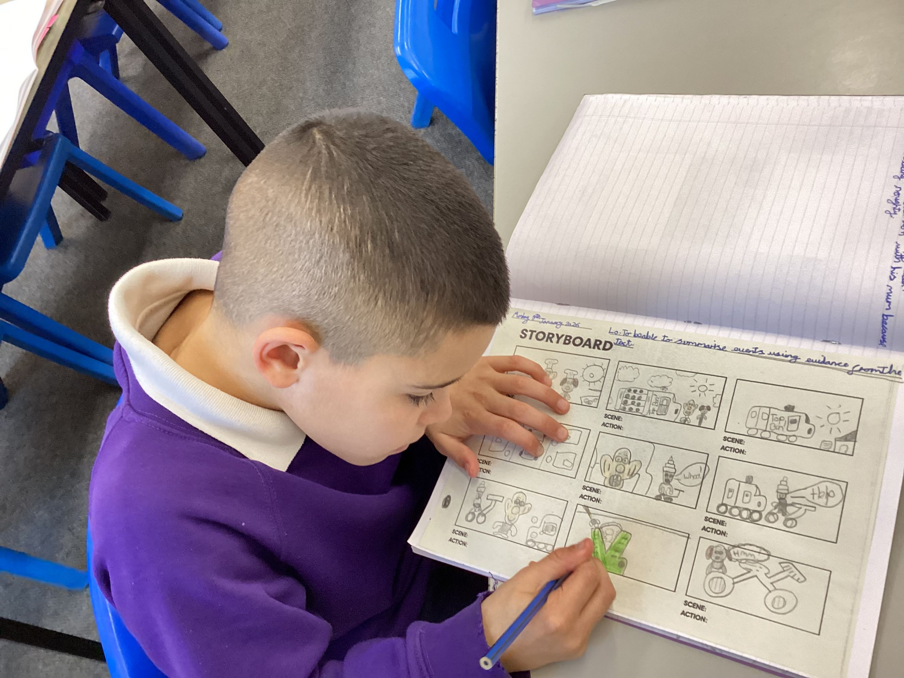 In English we have been studying the dilemma faced by Gromit in A Matter of Loaf and Death, thinking about the tough choices he has to make throughout the story. To help us understand the plot more clearly, we created our own storyboards, which allowed us to note the key events and explore how the tension builds as the characters face different challenges.
