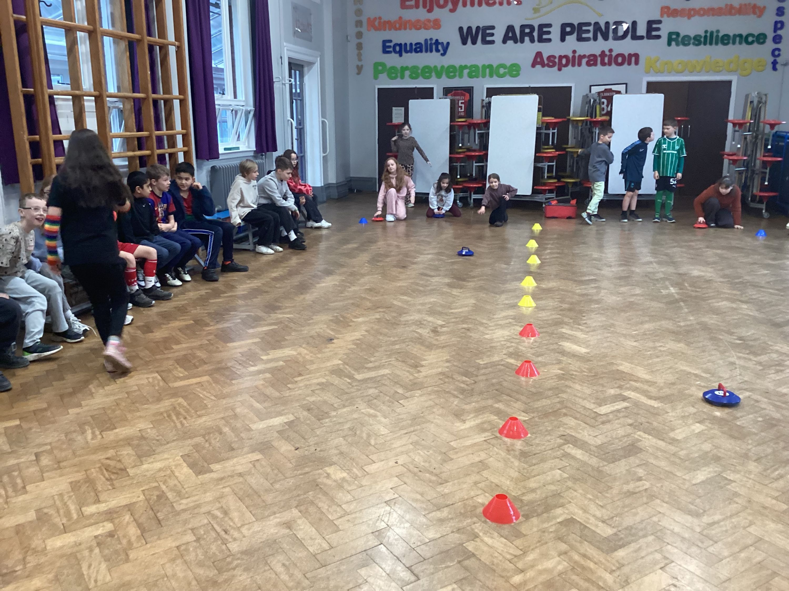 In honour of the Winter Olympics, we took part in indoor curling in the hall and it was a fun way to practise teamwork and accuracy. We worked in small groups to slide the curling stones across the floor, trying to get them as close to the target as possible. Everyone focused on controlling their speed and direction. We encouraged each other as we improved with every turn.