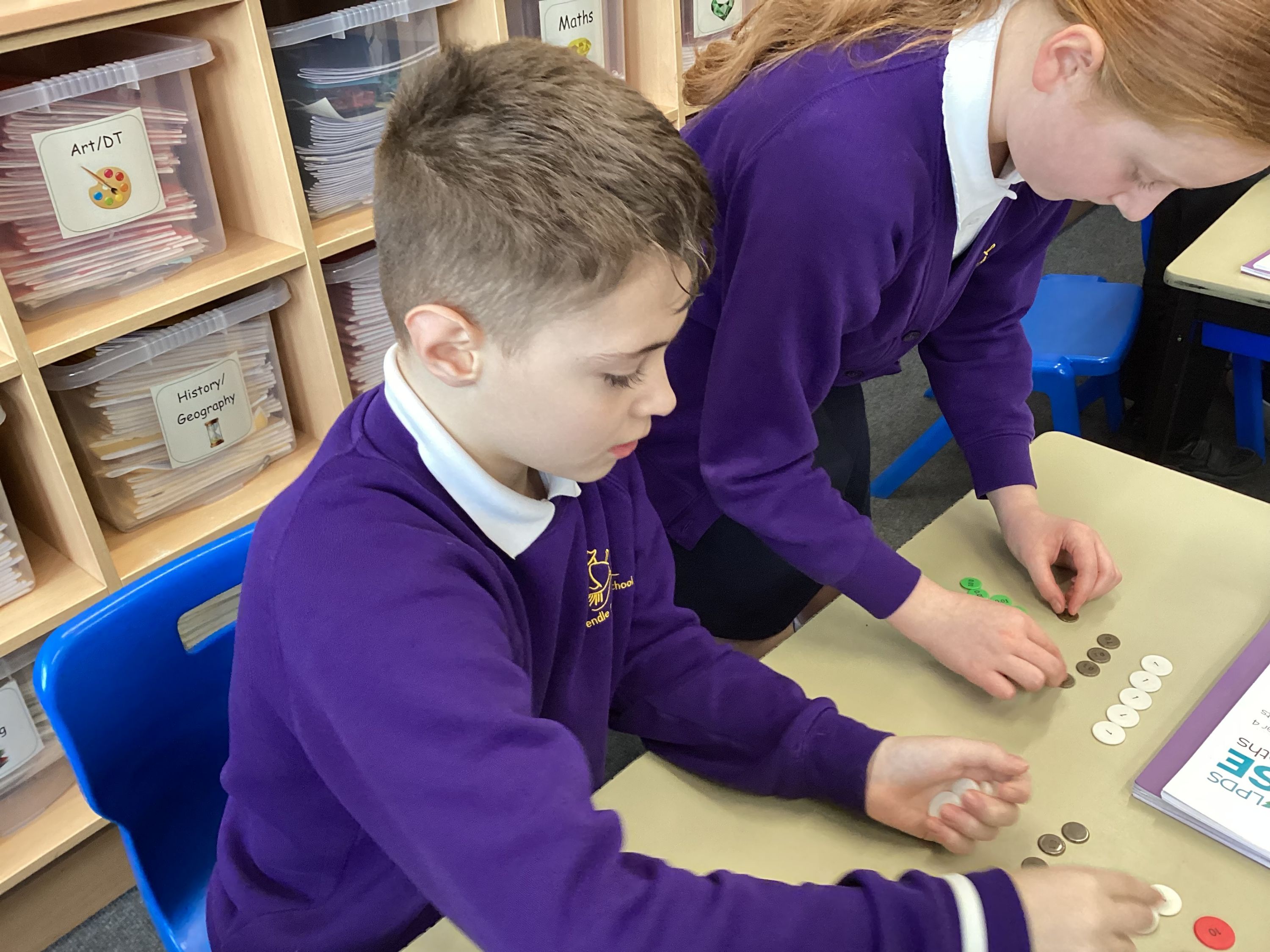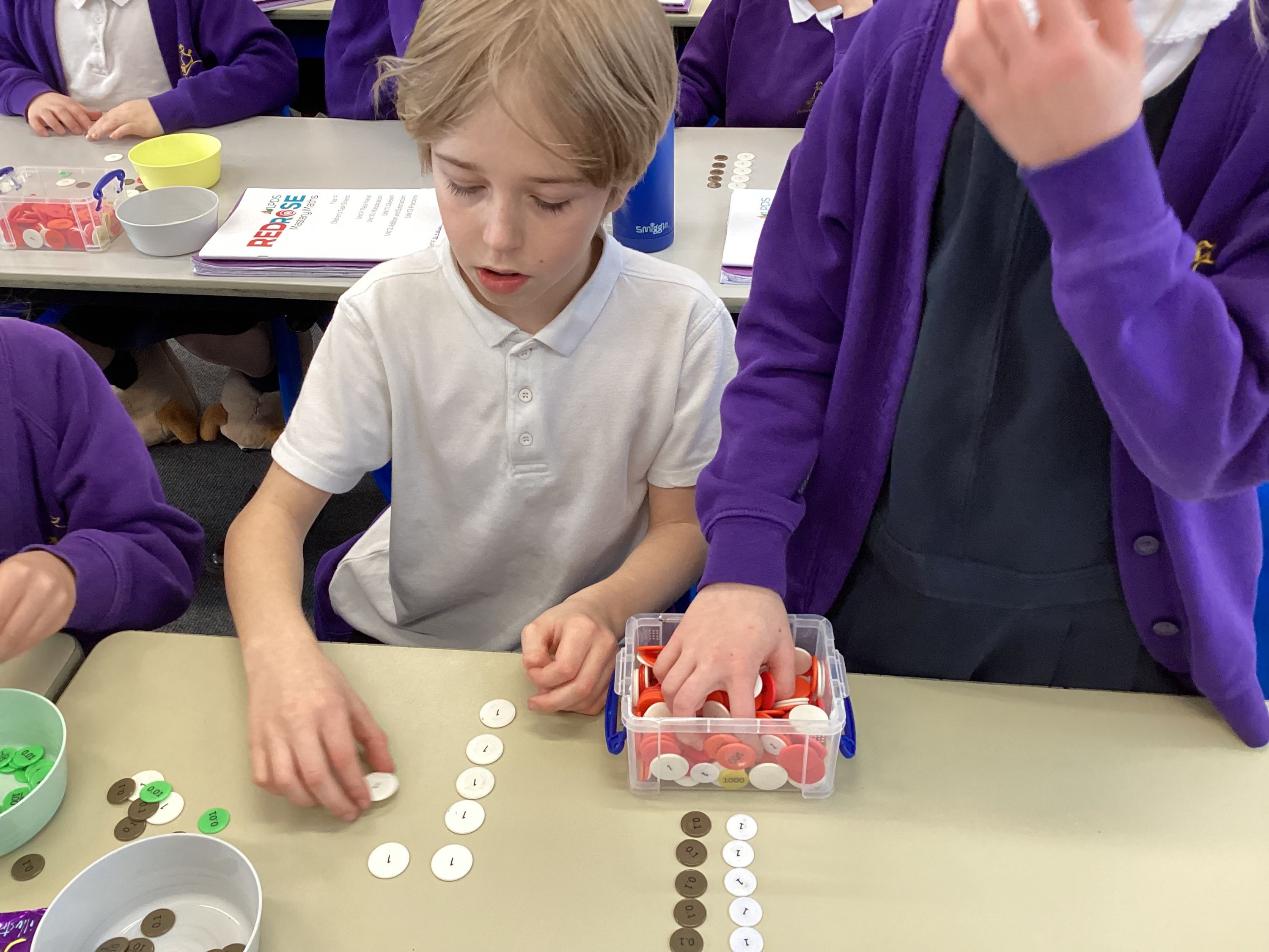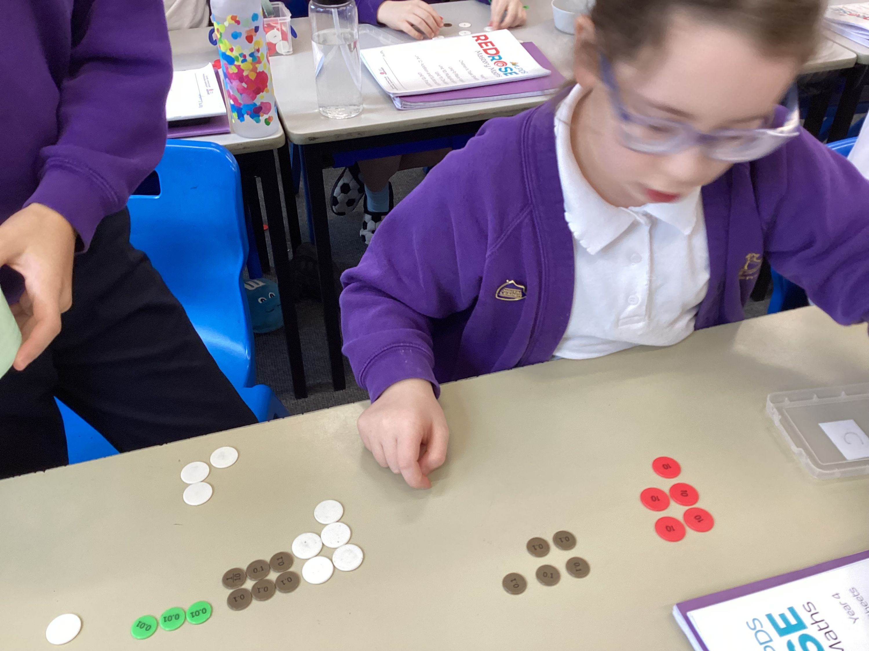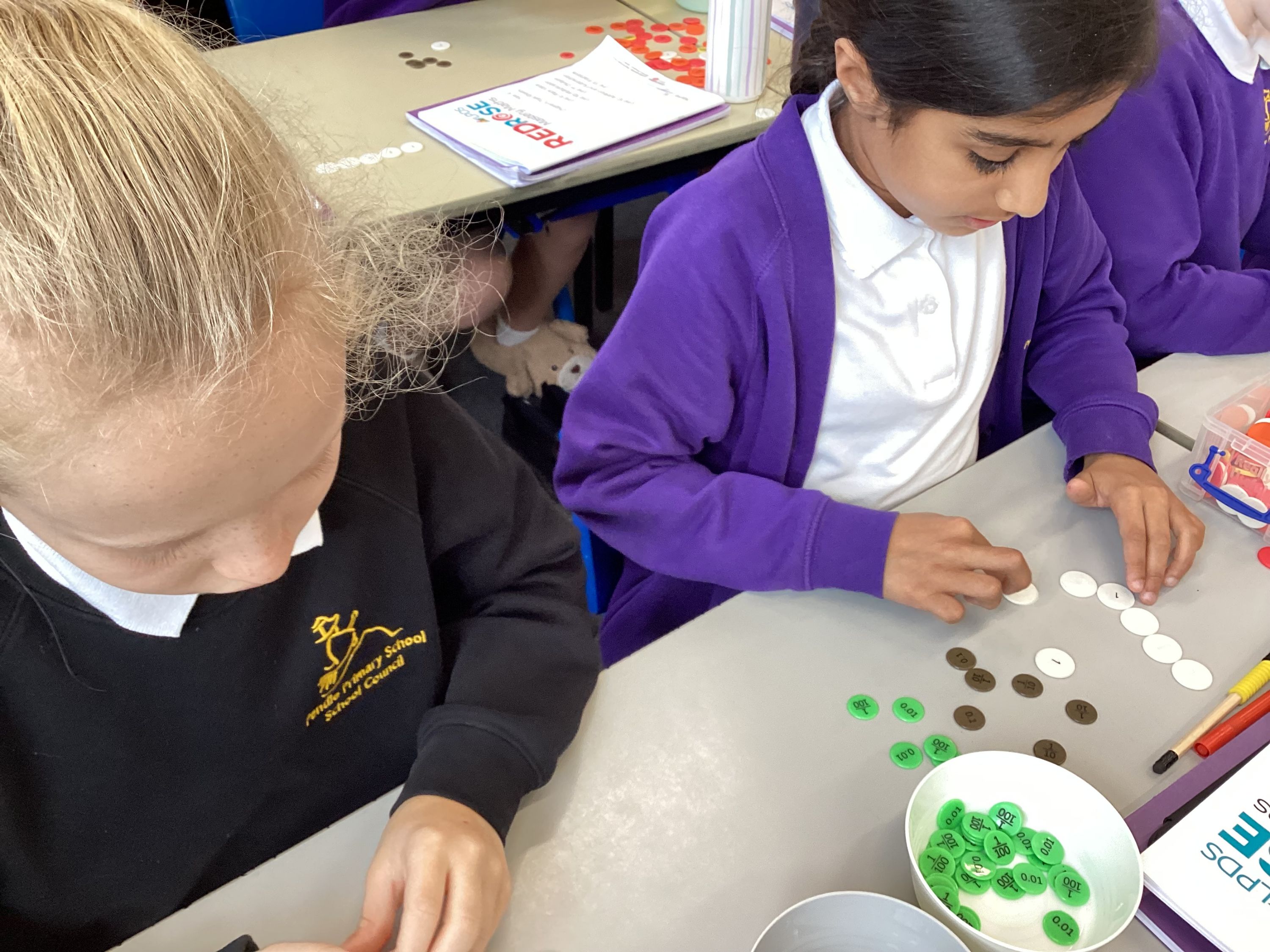 In Maths, Year 4 children have been continuing their work on the place value of decimal numbers. They have been learning how to order numbers up to two decimal places and have practised dividing numbers by 100. The class has worked hard to understand how digits move when dividing and how to compare decimal values accurately.