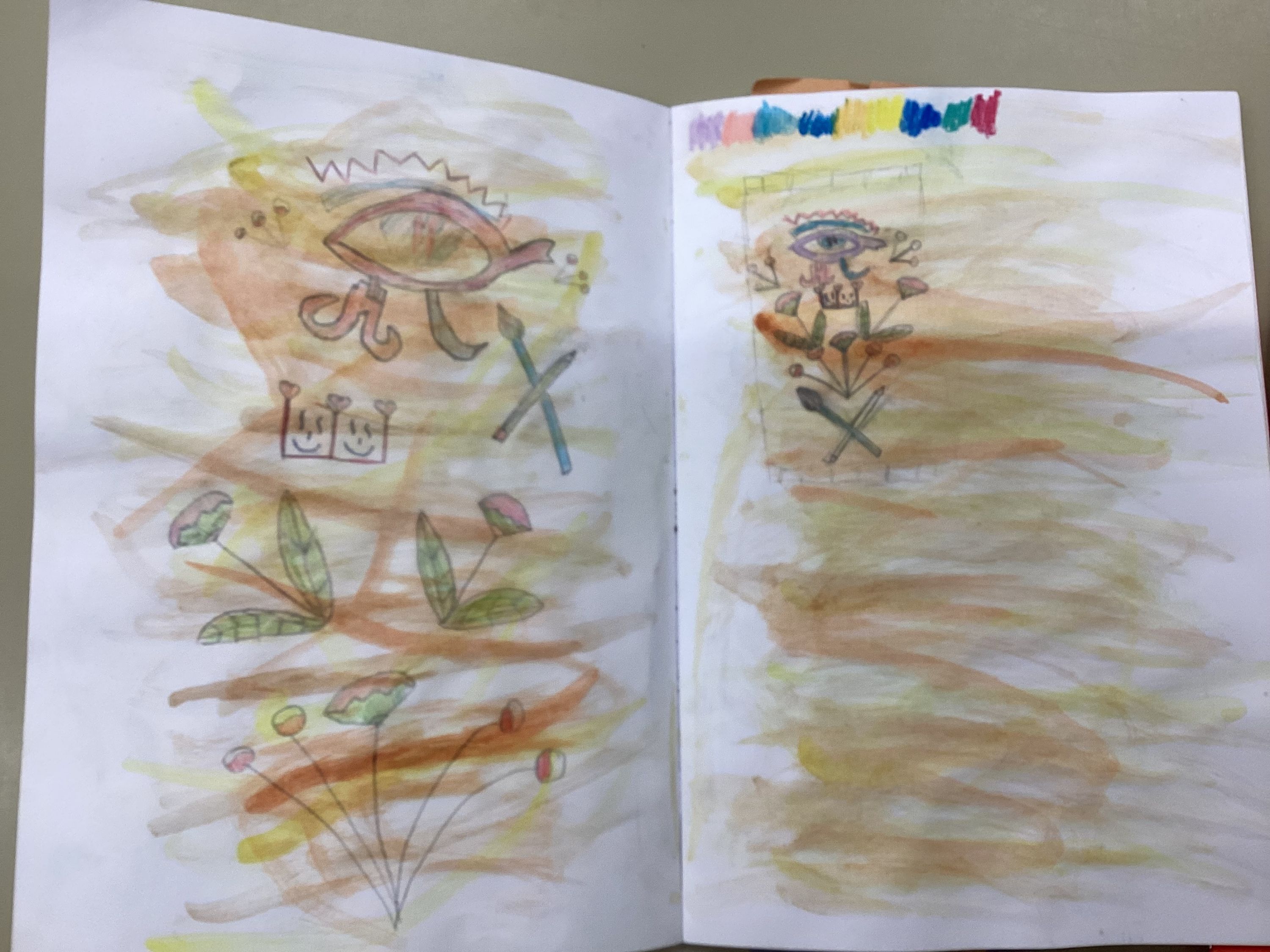 In Art we have been exploring images of Egyptian artwork and copying some of their distinctive shapes and ideas using a range of media. We particularly enjoyed using the pastels and chalks to create softer images, smudging our lines and shapes.