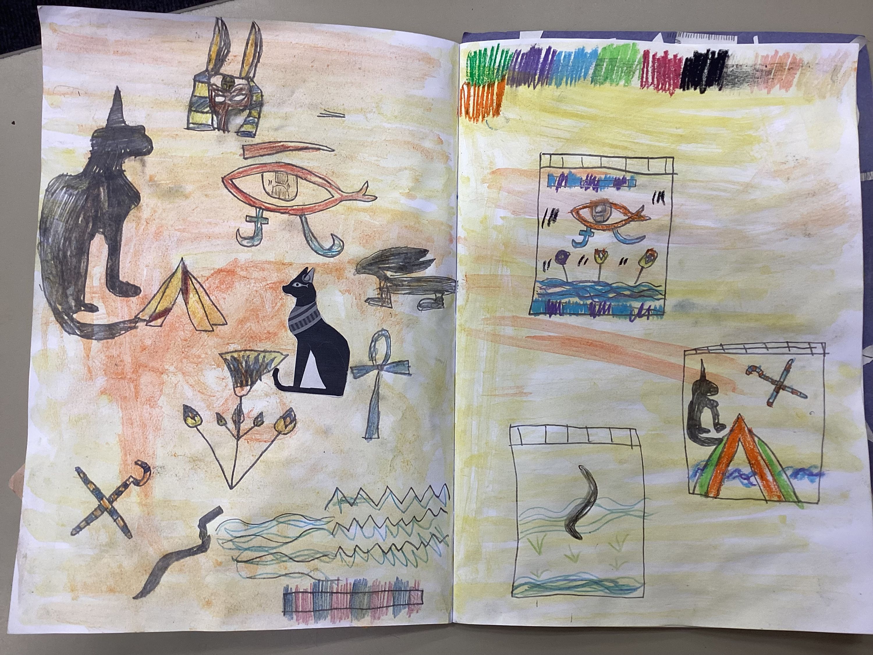 In Art we have been sketching ideas for our own scroll inspired by traditional Egyptian art, exploring the symbols, colours and storytelling style used by ancient artists.
