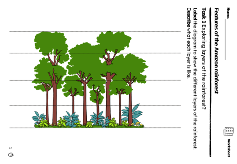 • A Rainforest Animals Fact File: Choose an animal (e.g. sloth, toucan) and write about its habitat, diet, and adaptations.