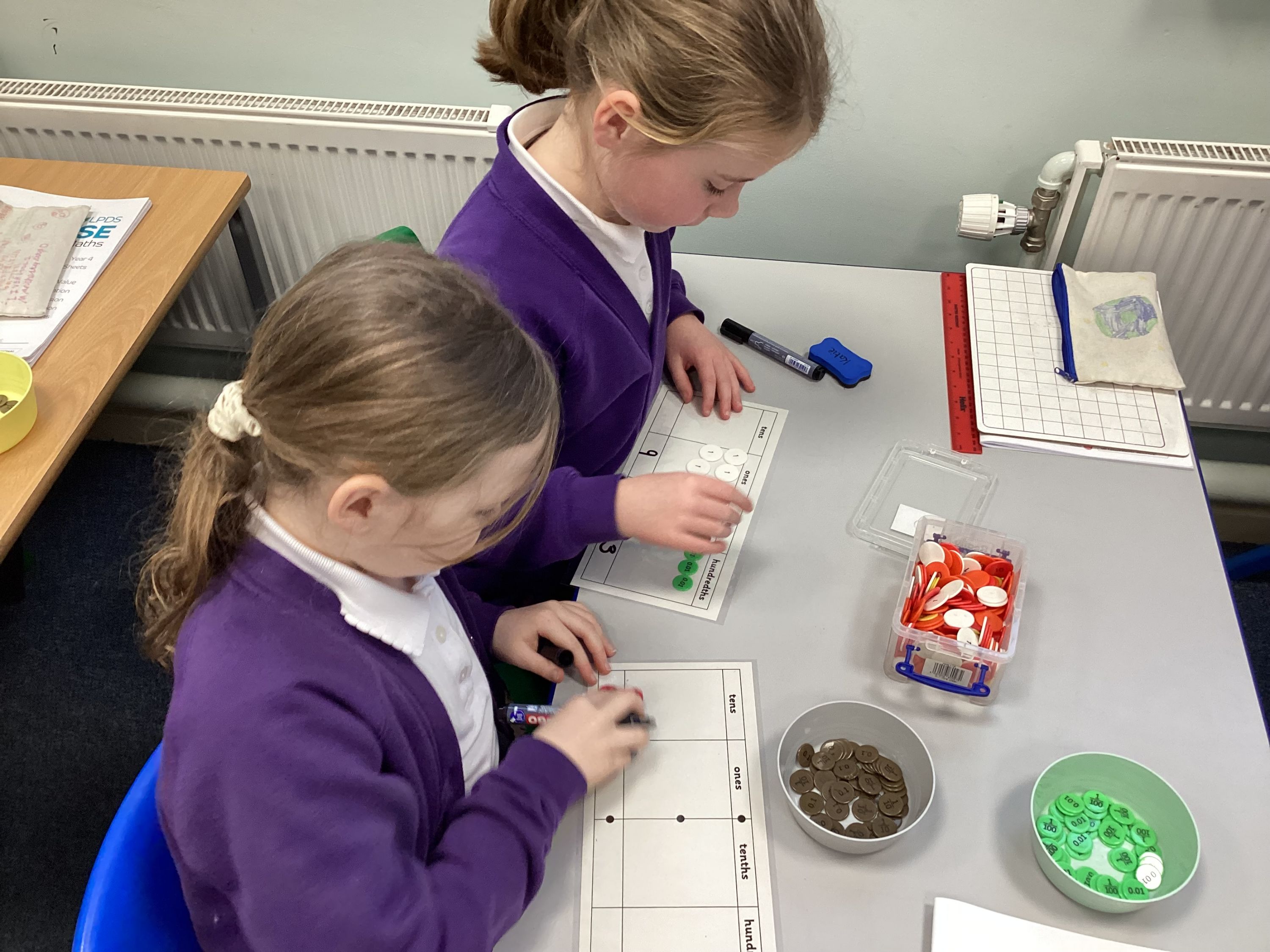 Year 4 children have been continuing their work on the place value of decimal numbers. They have been learning how to order numbers up to two decimal places and have practised dividing numbers by 100. The class has worked hard to understand how digits move when dividing and how to compare decimal values accurately.