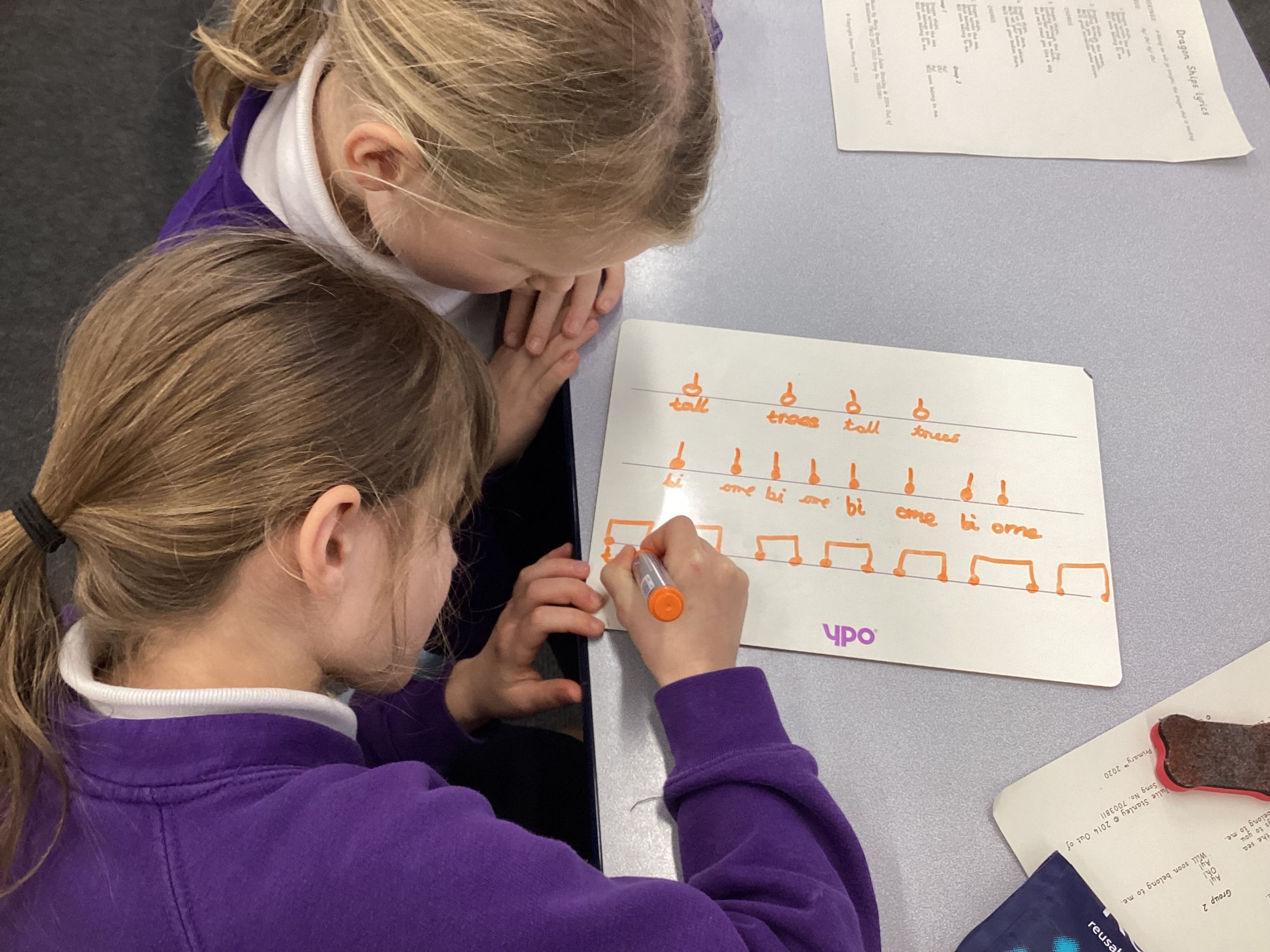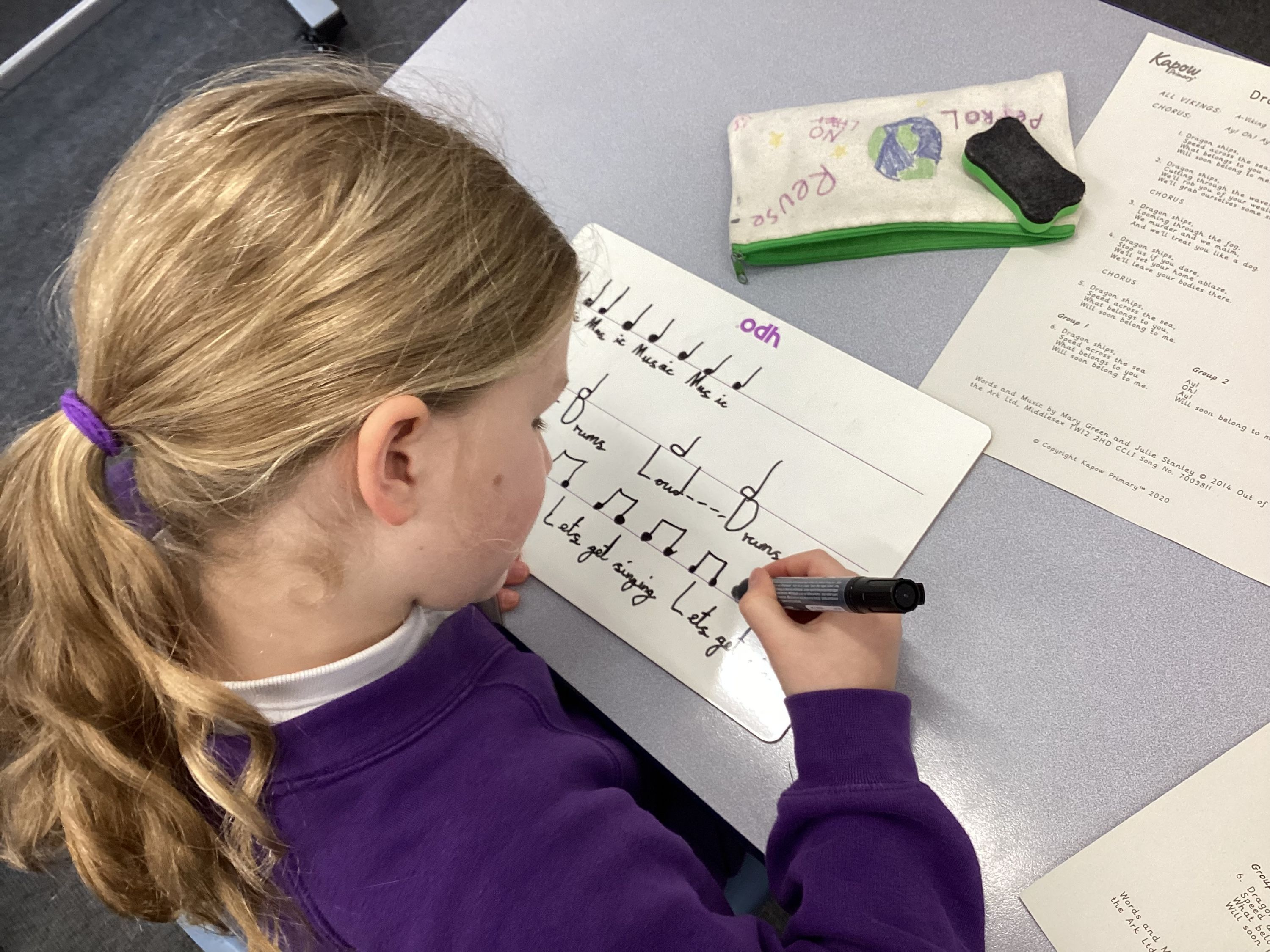 In Music, our Year 3 children have been working hard on recognising and naming note rhythms both by ear and from written notation. They have been exploring minims, crotchets, and quavers, and using these notes to create their own rhythmic patterns. The children particularly enjoyed composing rhythms inspired by our current classroom topics, showing great creativity and confidence as young musicians.