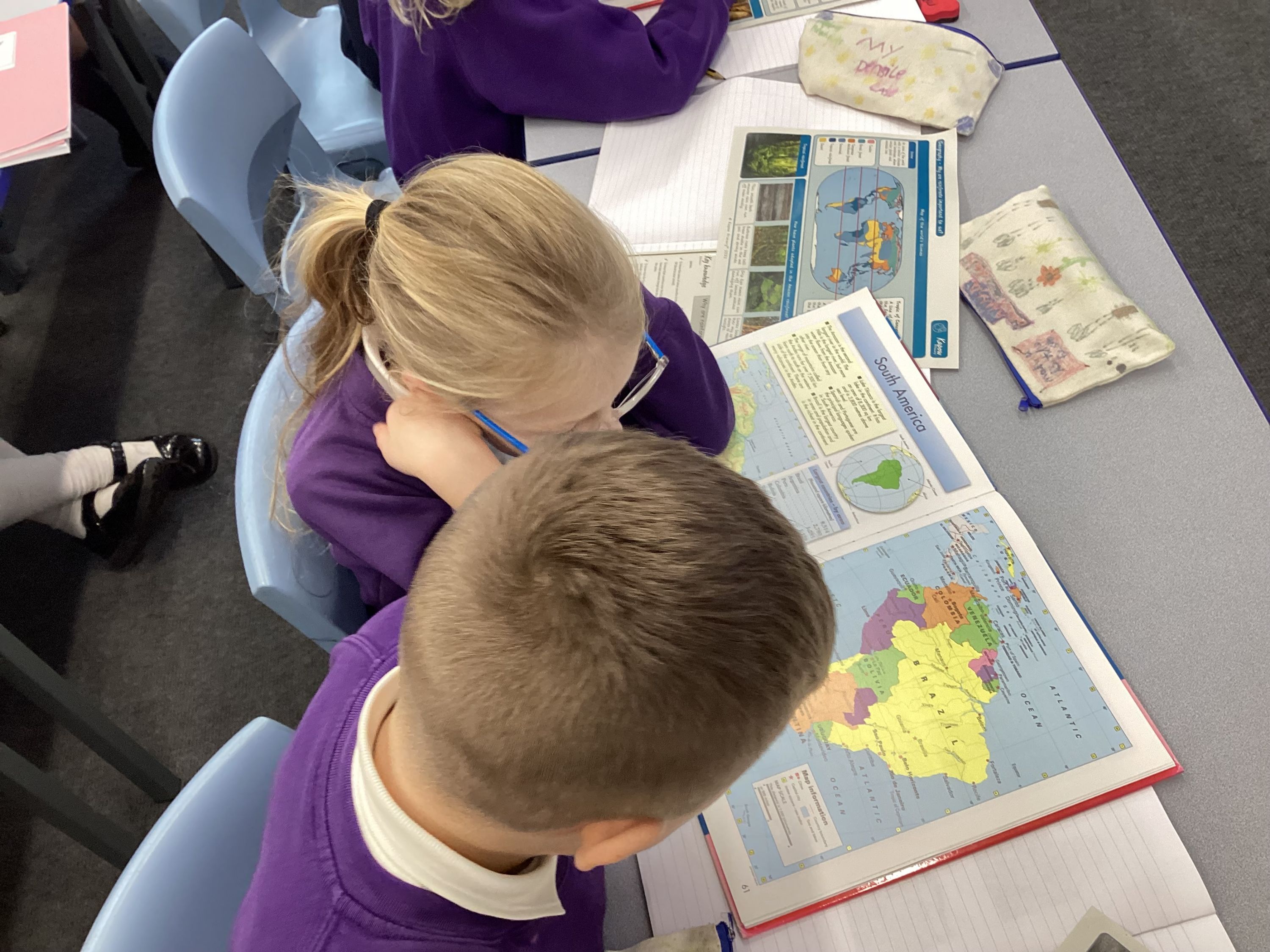 In Geography, the children have been exploring different biomes around the world and discussing where these environments can be found. They have enjoyed using atlases to locate key regions, including the Amazon Rainforest in South America. To deepen their understanding, the children also studied a range of photographs to identify some of the key physical features of the Amazon Rainforest.