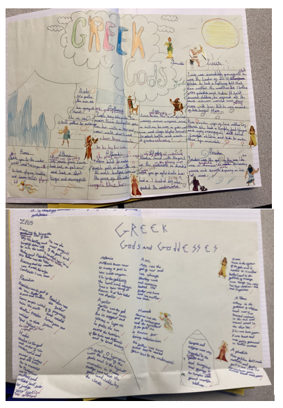 In English and History, we have been learning all about the Ancient Greek gods. The children enjoyed researching different gods and goddesses and used their findings to create informative and eye‑catching posters.