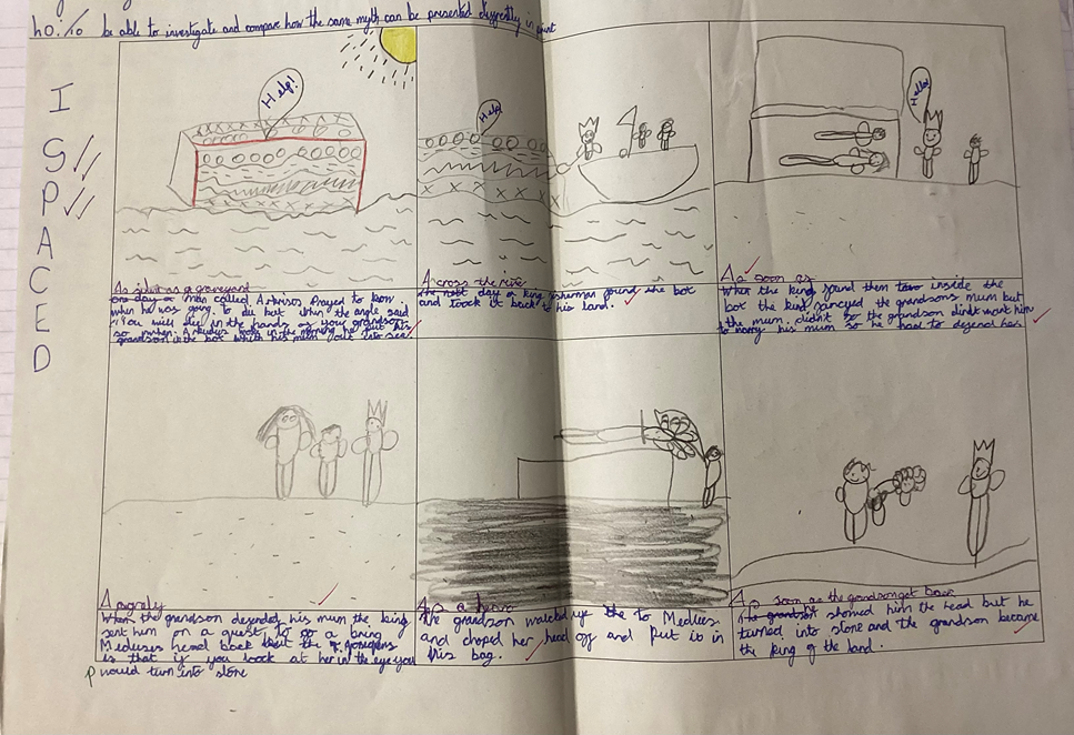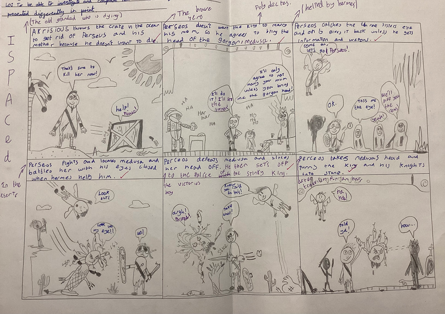 To bring Greek myths to life, we combined creativity and storytelling by designing our own comic strips of the famous tale of Perseus and the Gorgon Medusa. The children loved illustrating dramatic scenes and adding dialogue to capture the excitement of this legendary story!