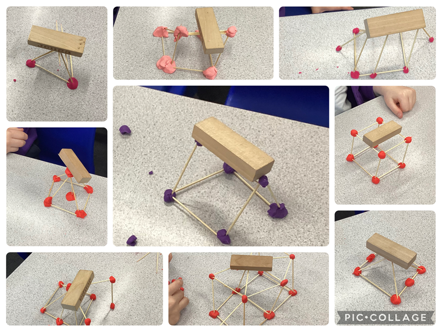 In DT, the children explored frames and structures, with a particular focus on triangulation. They created different frame structures then tested them carefully to see how strong and stable they were.