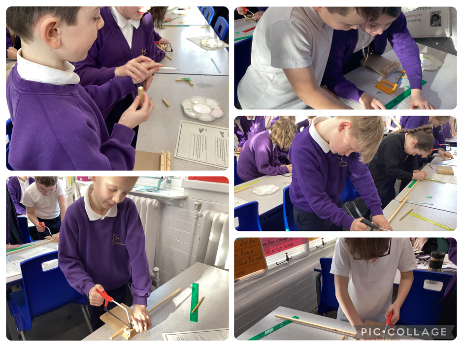 In DT, the children focused on different types of joints, using hacksaws, bench hooks and rulers to carefully measure and cut square-section wood. They created two types of joins—a butt joint and a lap joint—developing both accuracy and confidence with tools.