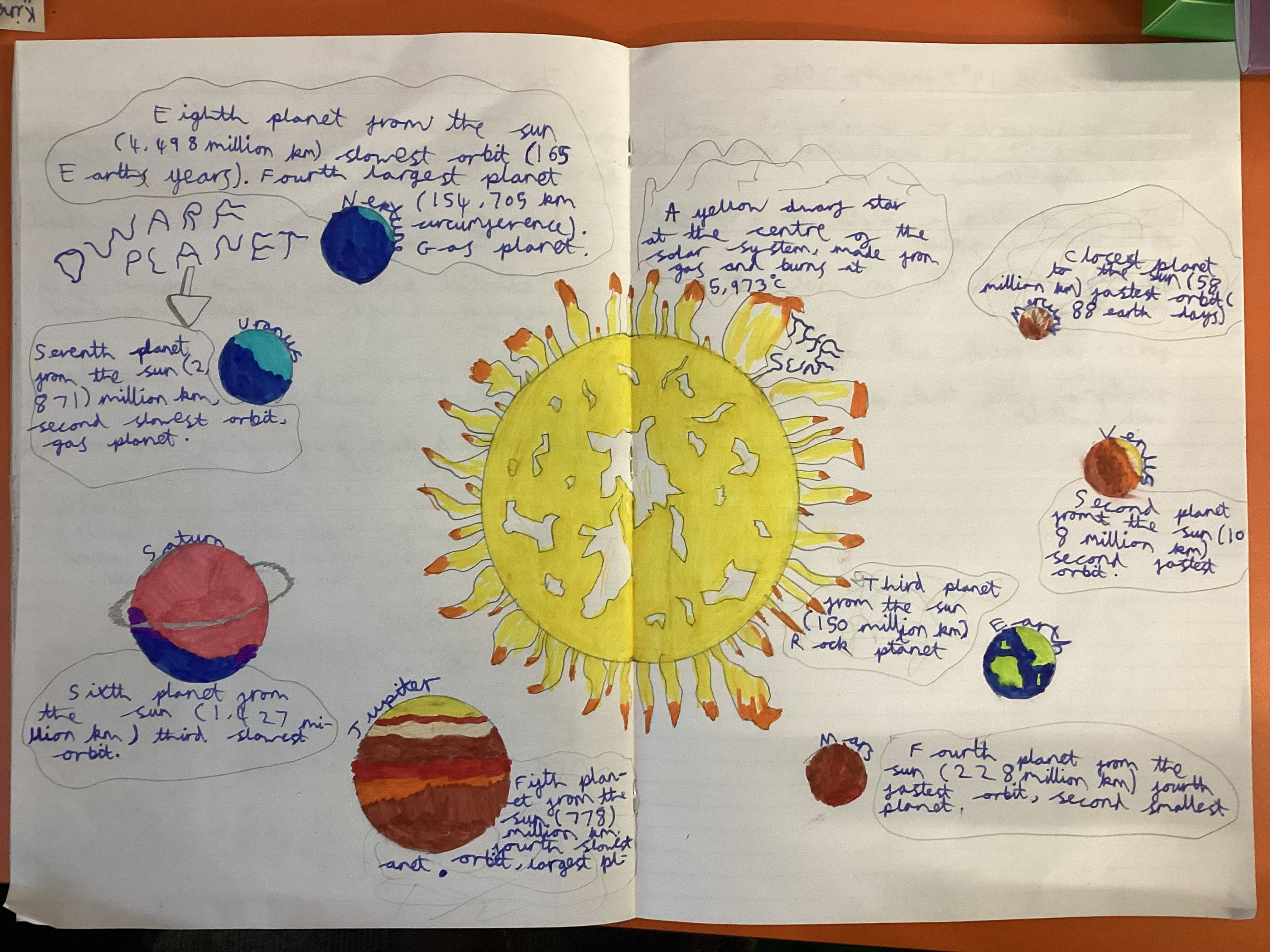 In Science this week, we’ve been exploring the wonders of our solar system. The children learnt about each planet and their unique features, from scorching temperatures to icy atmospheres. To deepen their understanding, they created detailed diagrams showing all eight planets in order from the Sun, adding key facts.