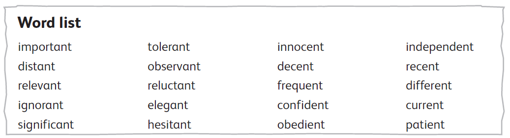 This weeks focus is –ant and –ent. Telling the difference between –ant and –ent endings can be tricky, because they sound almost the same. This means we can’t rely on pronunciation to help us spell them correctly.