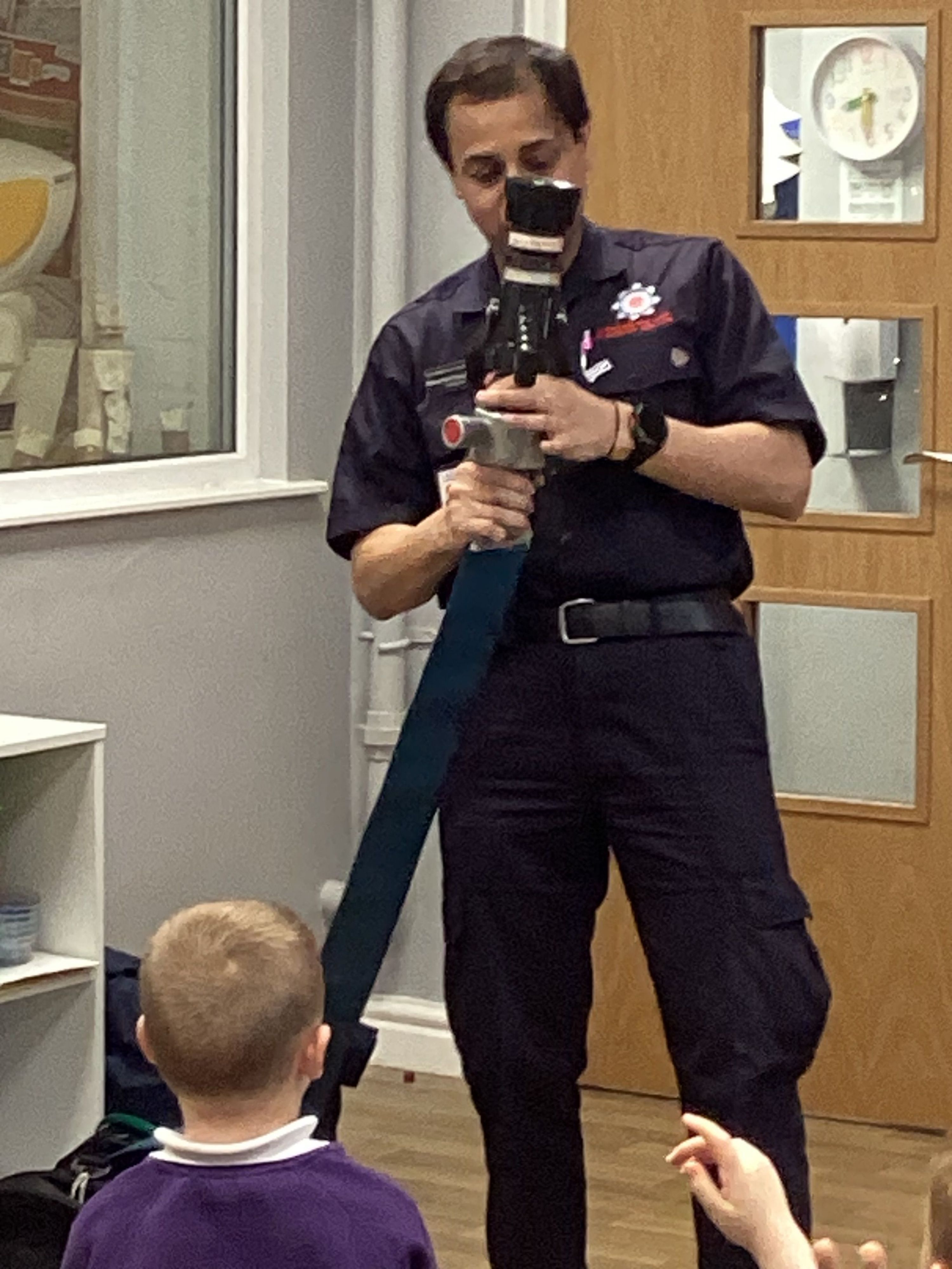 Year 2 children were visited by a firefighter who spoke to them about the importance of fire safety.